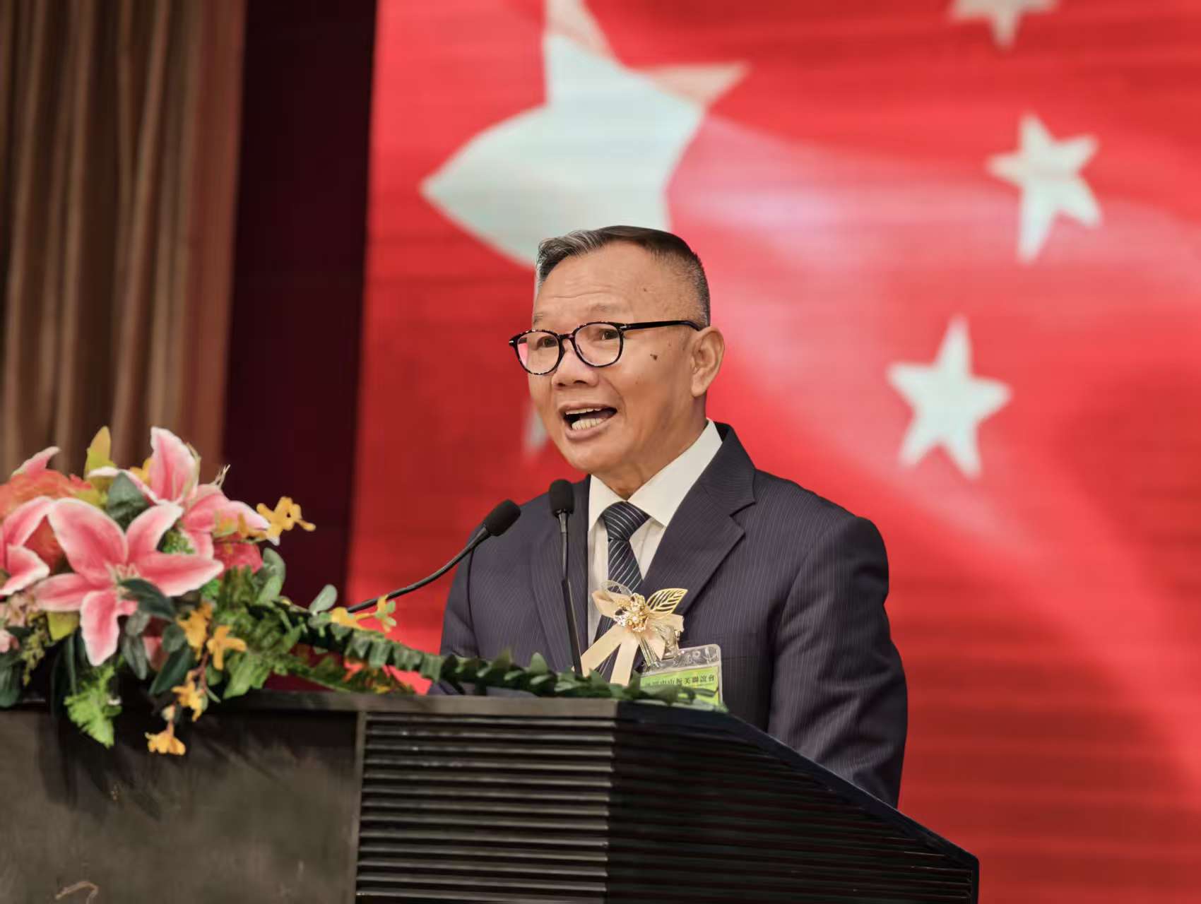 倪小平致辭介紹家鄉的發展現狀與未來機遇,誠邀澳門企業家、青年回鄉投資創業。他期望聯誼會新一屆理監事秉持宗旨,團結鄉親,以僑為橋,助力澳門與家鄉共同發展。