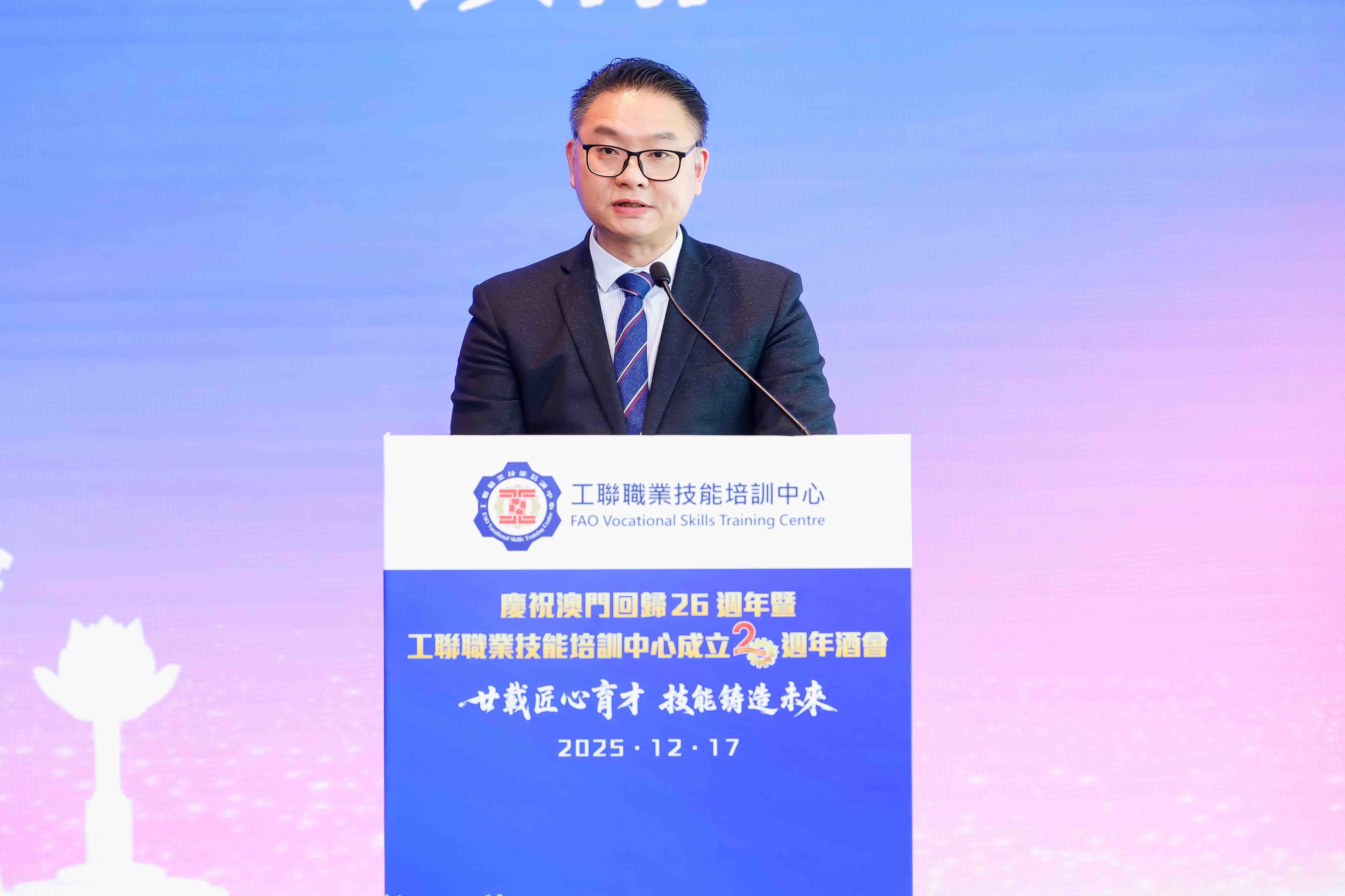勞工局局長陳元童表示,在經濟轉型與產業結構調整的背景下,持續培養具有就業競爭力、適應發展需求的高質素人才,是澳門可持續發展的核心任務。他提出三點建議,一是增強居民的職業技能與綜合素養;二是發揮技能競賽的示範引領作用;三是深化粵澳合作,拓展居民的職業發展空間,促進融入國家發展大局。