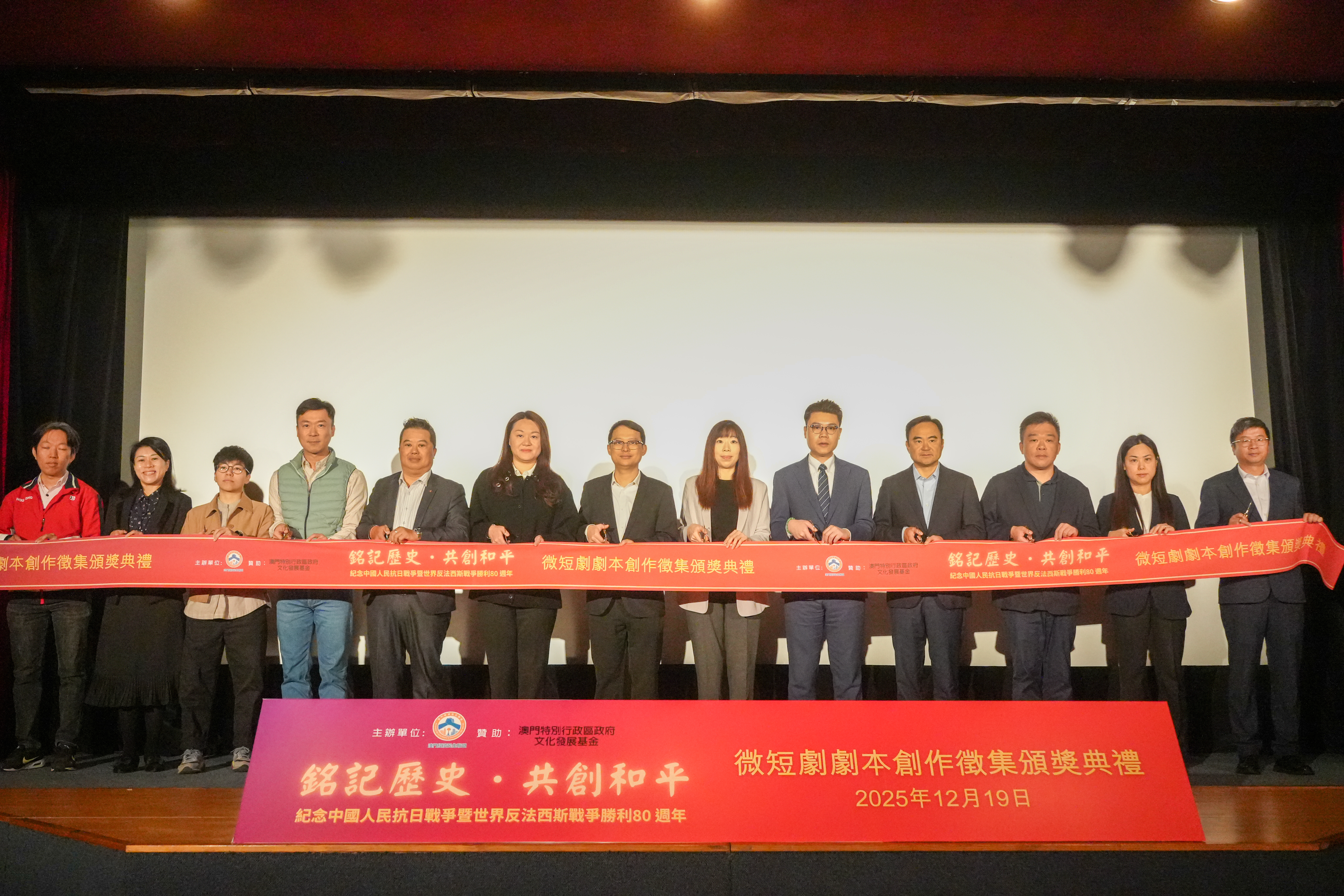 【即時新聞】為進一步傳承「愛國愛澳」精神,由澳門經濟民生聯盟主辦的「『銘記歷史·共創和平』紀念中國人民抗日戰爭暨世界反法西斯戰爭勝利80周年微短劇劇本創作徵集」,今日上午在澳門大會堂二院舉行頒獎典禮,活動由澳門文化發展基金贊助。
