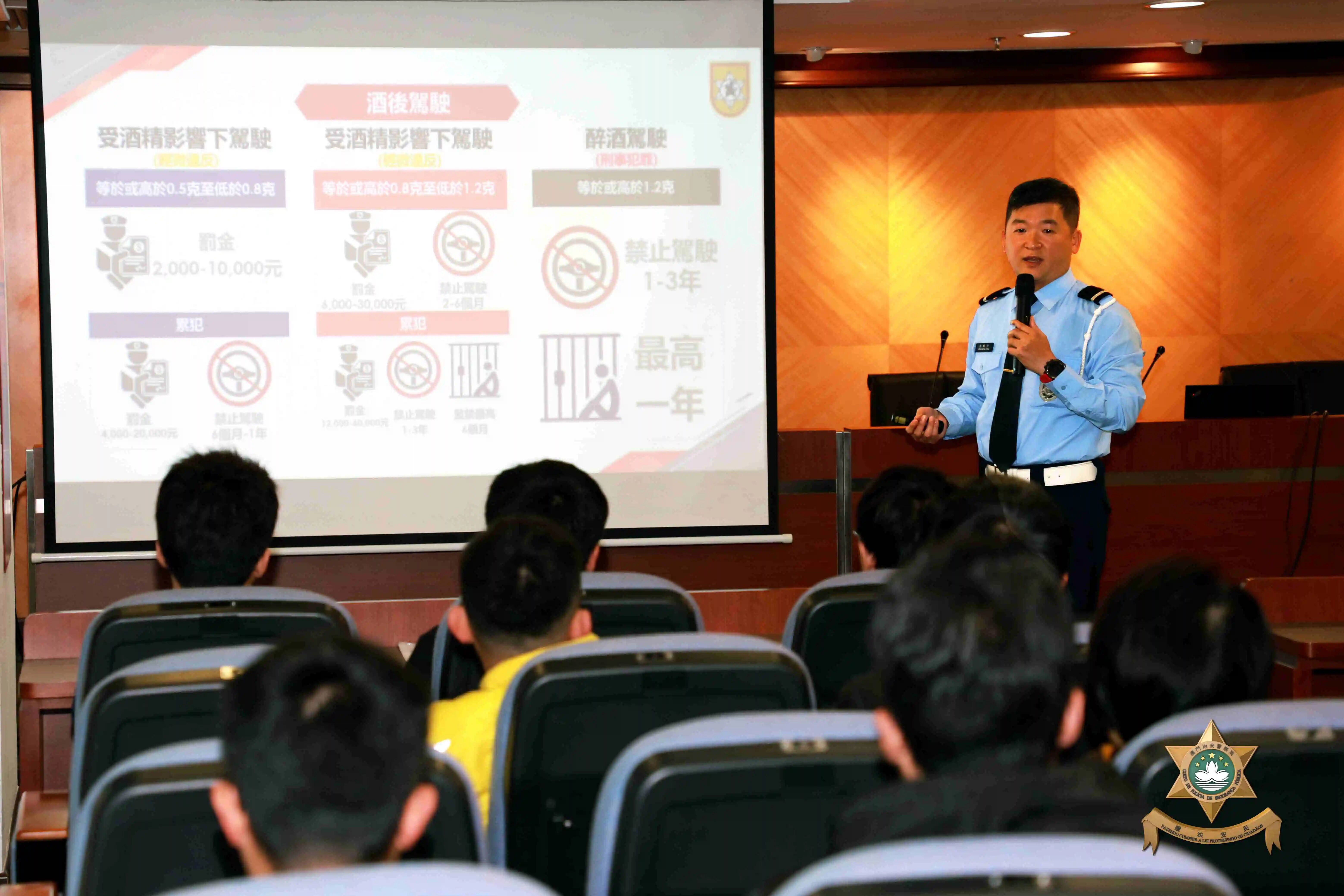 治安警一直採取主動執法打擊行動,根據此類違法行為的特點及趨勢,針對性部署於餐廳、酒吧聚集地周邊,尤其於節假日及大型活動舉辦期間,於主幹道、口岸周邊等地點隨機設置路障截查車輛,並對駕駛者進行呼氣酒精測試,以加強打擊及阻嚇酒後駕駛行為。另外,治安警亦會透過不同的媒介和多管道進行宣傳,透過新聞發佈打擊酒駕和藥駕的個案,加強對駕駛的警惕和宣傳效果,以及透過現有的聯絡機制進行溝通並舉辦講座,向各行各業的居民和駕駛者灌輸守法意識。