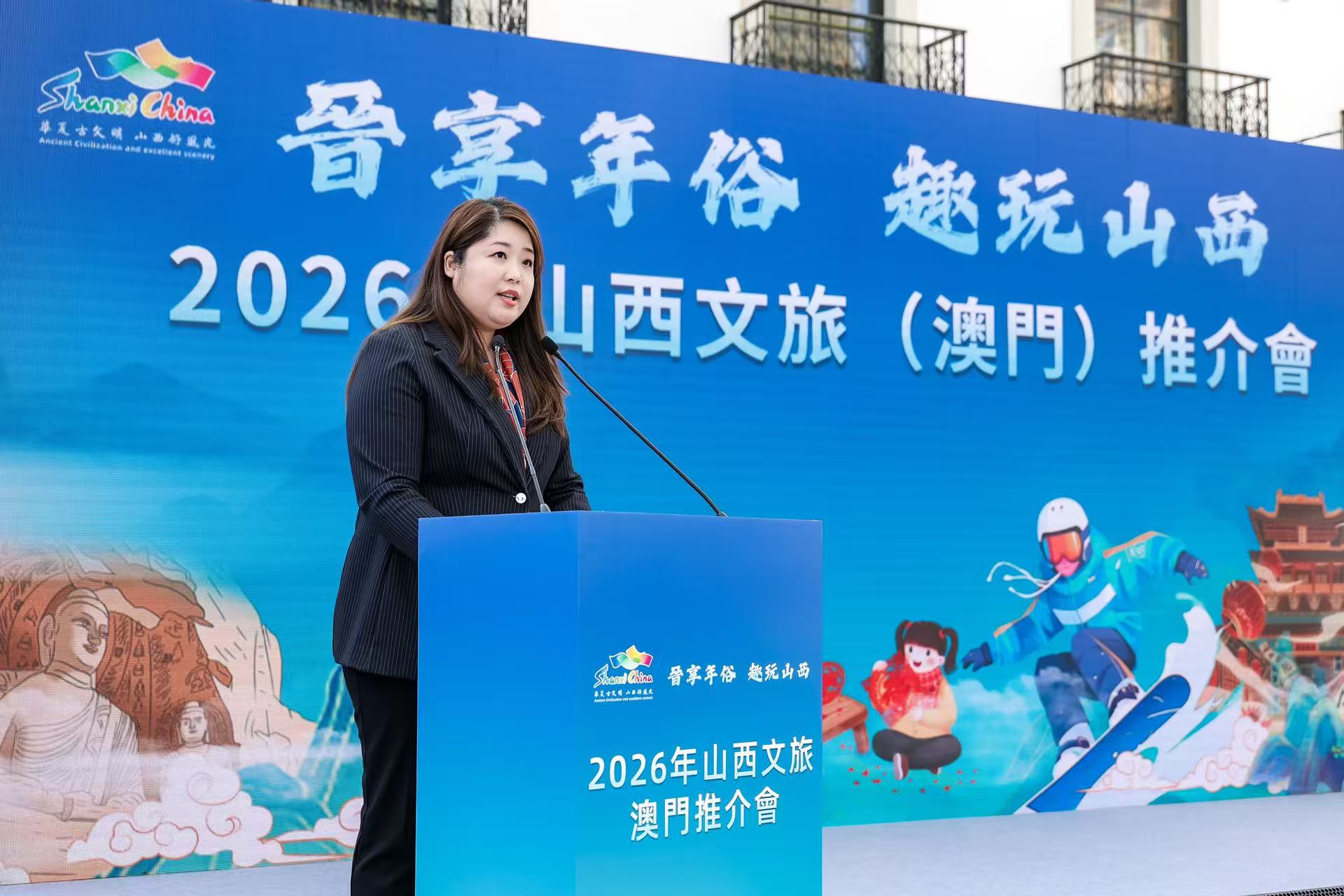 山西省文化和旅遊廳廳長王愛琴致辭表示,山西是中華文明的重要發祥地,擁有豐富的歷史文化遺產和獨特的民俗風情。多年來,晉澳兩地互為重要的旅遊客源地和目的地,人文往來日益密切。去年澳門入境遊客同比增長88%,文旅領域的交流合作持續深化、成果豐碩。此次推介會帶著三晉大地的冬日盛情與年俗雅韻來到澳門,既是為了搭建更廣闊的文旅合作橋樑,更是希望借助澳門的國際平台和獨特區位優勢,讓更多海內外人士領略山西的獨特魅力。期待進一步深化與澳門在跨境旅遊線路共建、文旅品牌協同推廣、葡語國家市場開拓、文旅人才交流互建等全方位合作。誠摯邀請大家走進山西,領略表裡山河的壯美與三晉大地的熱情,並期待未來持續深化交流,共譜合作新篇。