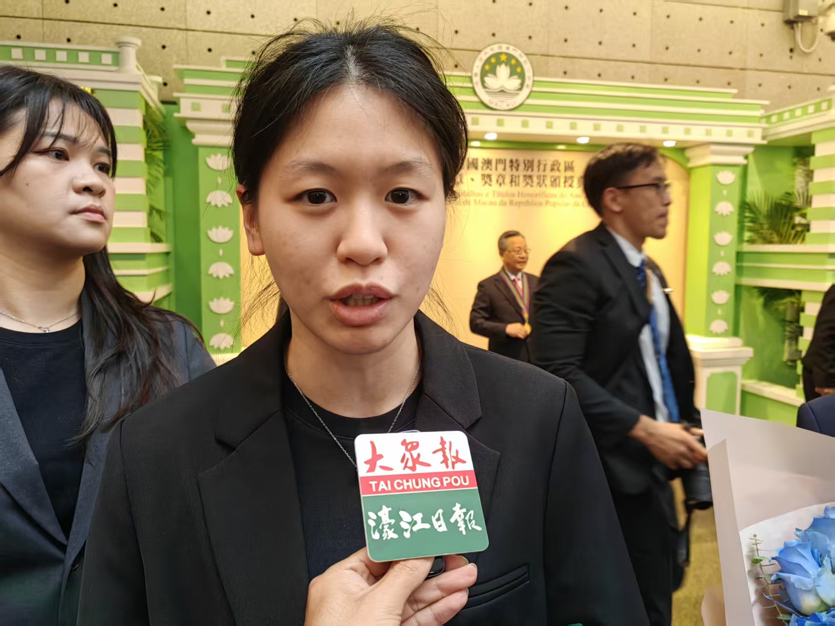作為代表上台授勳的蘇詠思受訪表示,非常感謝隊友,十分榮幸代表團隊在台上獲授予功績獎狀,強調這份榮耀屬於團隊每一個人。這項殊榮不僅是對自己多年運動生涯的肯定,更堅定了她繼續從事保齡球領域的決心。她稱,獎牌是鞭策,更是動力,激勵她們更積極訓練;她透露,與隊友正加緊訓練,力爭在今年底的世界盃上再衝世界級獎牌。個人發展方面,她計劃今年首次征戰美國保齡球職業賽事,力爭在國際賽場上展現澳門運動員的風采。