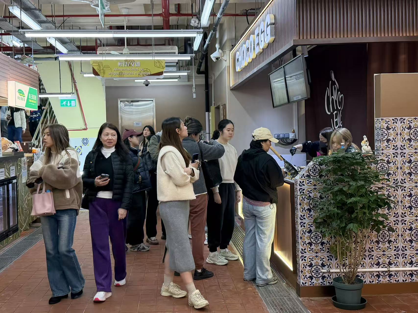 假日期間的氹仔街市人氣高漲,活化後的氹仔街市憑藉獨特氛圍吸引著不少市民與遊客前來打卡。來自台灣的鄭女士隨公司旅遊團到訪,其行程中推薦地點有氹仔街市,因此她和兒子前來。鄭女士提到,這是自己首次體驗澳門街市,她稱讚街市裝潢華麗、氛圍熱鬧且環境乾淨。對於有什麼地方可以改進,鄭女士表示,座位有些不足,可能因為自己是週末前來,人流量很多,很熱鬧,但找位子有點困難,希望可以加多些座位。