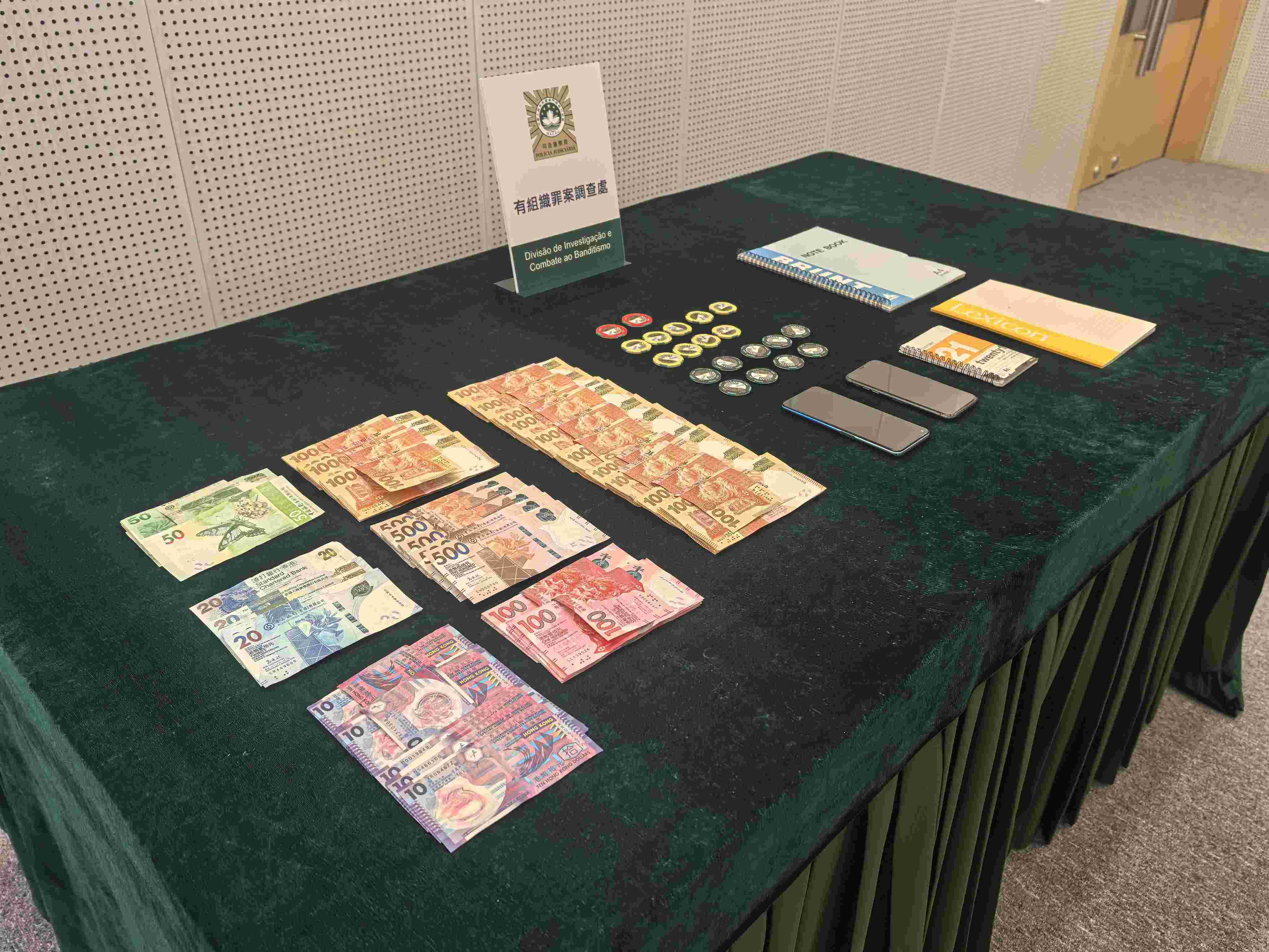 【即時新聞】司警在路氹城某酒店內的珠寶店偵破一宗非法匯兌案件,拘捕一名本地女店員,並在店內檢獲158,970港元現金、三部數簿及兩部手機。