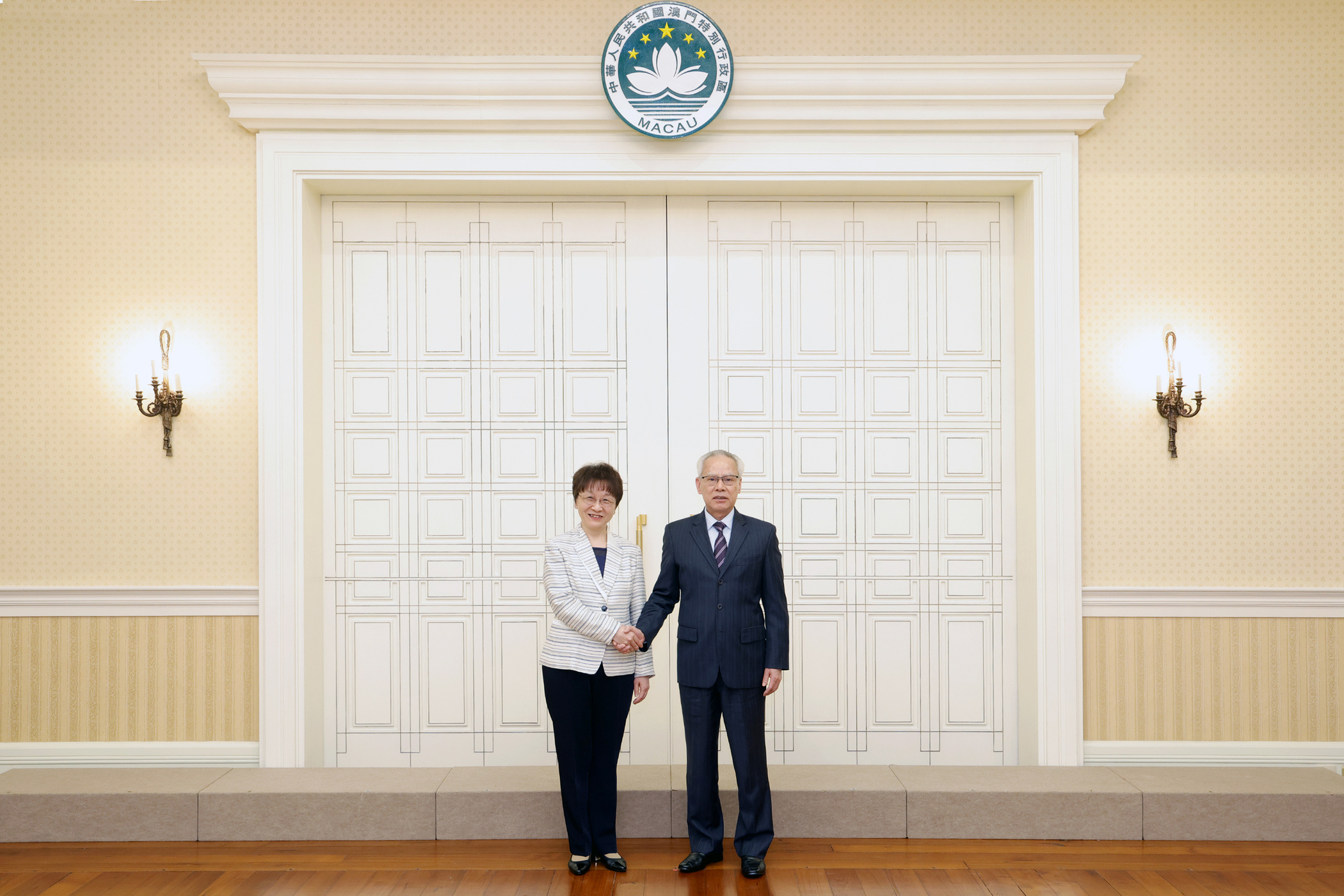 【即時新聞】行政長官岑浩輝今(3)日在政府總部與外交部新任駐澳門特別行政區特派員公署特派員卞立新會面,雙方就澳門特區的涉外事務、“一國兩制”成功實踐等議題交換意見。