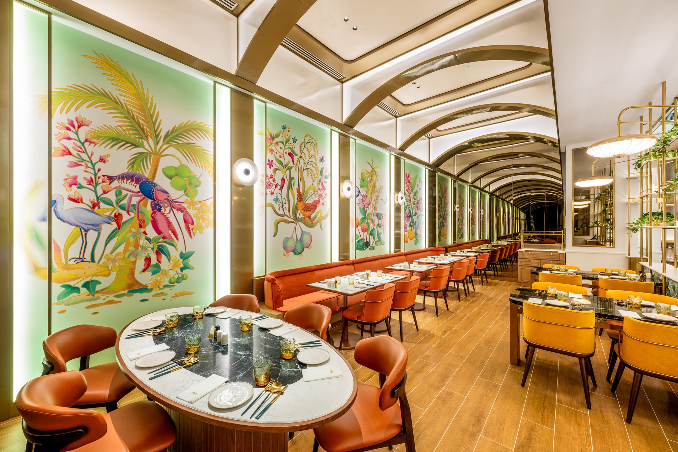 位於澳門美高梅的「話匣子」,室內設計靈感源自新加坡本店,並融入澳門獨特的葡式建築元素,透過拱形門廊、木飾細節及馬賽克嵌畫等,營造東南亞與南歐文化交融的當代氛圍。餐廳特別邀請來自新加坡的藝術家陳紫曦創作四幅主題畫作,以藝術語言詮釋「話匣子」四大經典美饌,包括「新加坡文華雞飯」、「龍蝦喇沙」、「新加坡咖喱雞」及「招牌椰子雪糕」,當中更巧妙加入澳門生態意象如蓮花與黑臉琵鷺,打造新加坡風味與澳門相互交織的獨特風景。
