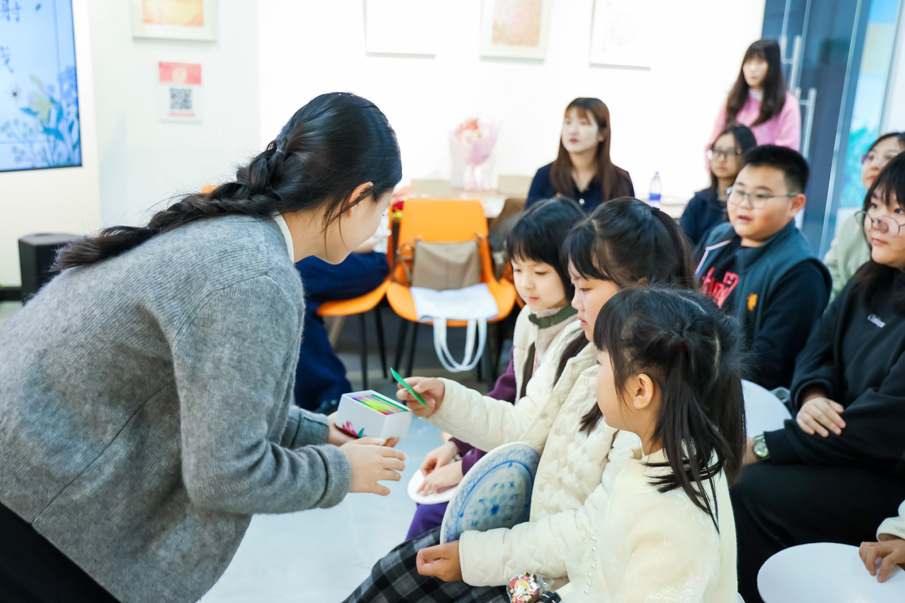 隨後登場的「小小美育體驗官」環節充滿驚喜與感動。在黎秋菊老師的鼓勵下,孩子們站在作品前分享自己的創作想法與美學發現,童真而真誠的表達,讓展覽空間化為親子對話與情感交流的舞台,現場掌聲此起彼落。