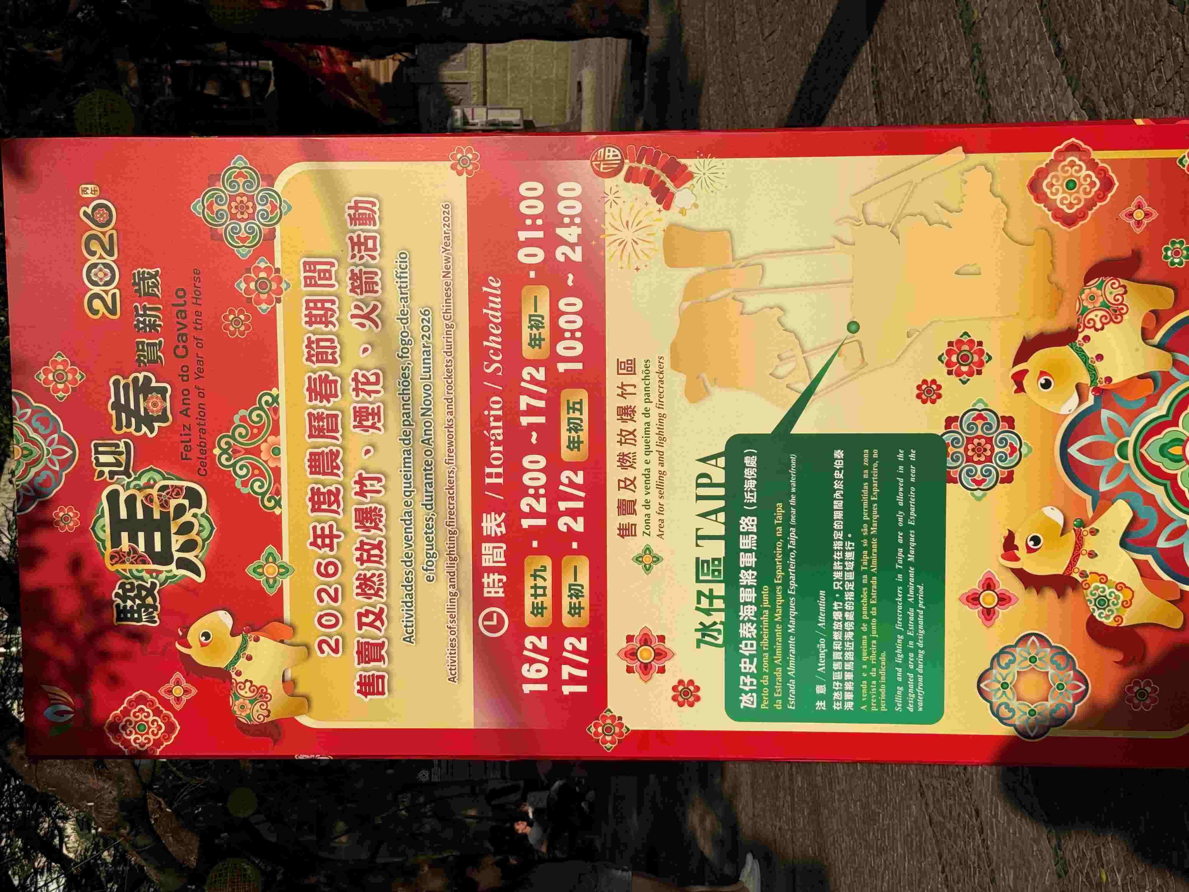 另外,爆竹燃放區今年設於史伯泰海軍將軍馬路近海傍處,營運時間為明日中午十二時至後日凌晨一時,以及2月17日(年初一)至2月21日(年初五)每日上午十時至午夜十二時。現場設六個售賣爆竹、煙花及火箭的攤檔,較過往增加兩個。