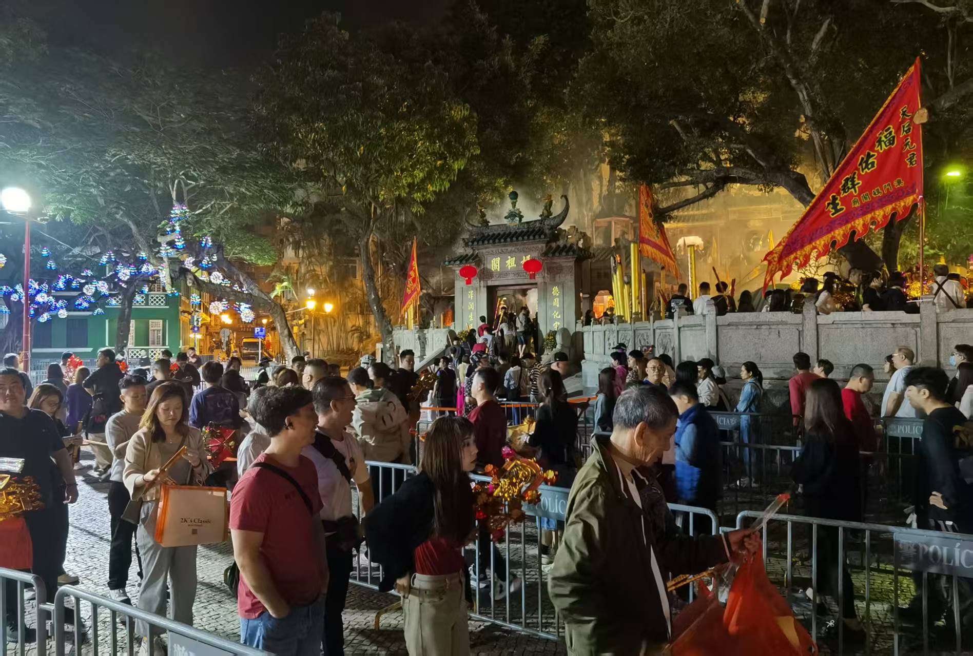 媽閣廟在除夕晚上十時開放居民善信入內上頭炷香,警方在廟門口前地擺放鐵欄圍成通道,應對人潮高峰時採取潮水式放行,以維持秩序。