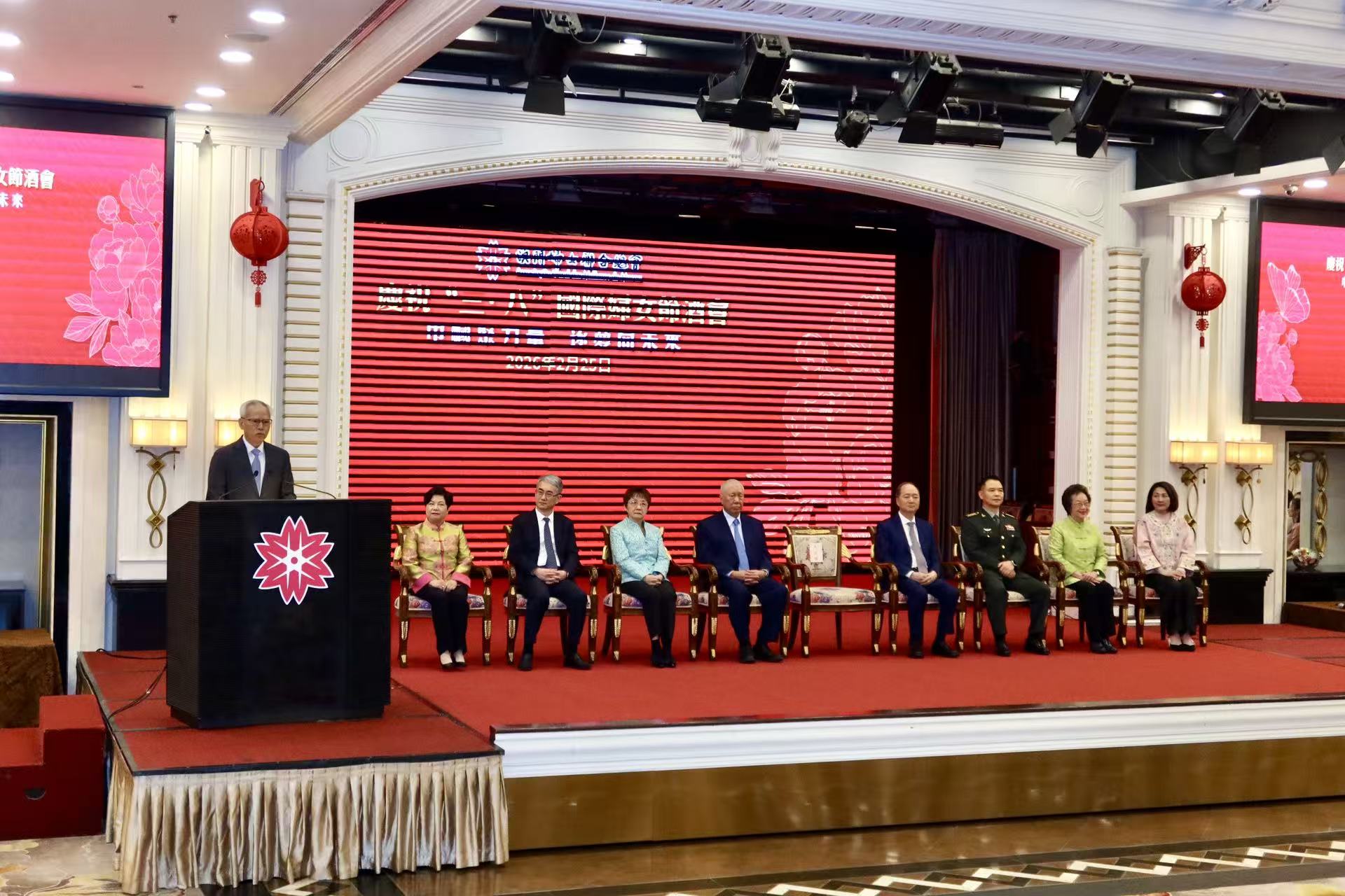 【即時新聞】婦聯總會下午三時假萬豪軒舉行慶祝“三·八”國際婦女節酒會,行政長官岑浩輝、全國政協副主席何厚鏵、中聯辦主任鄭新聰、外交公署特派員卞立新、駐澳部隊副司令員戴勁松、立法會主席張永春出席,在婦聯總會永遠會長賀定一、會長劉金玲、理事長袁小菱陪同下主禮及祝酒。