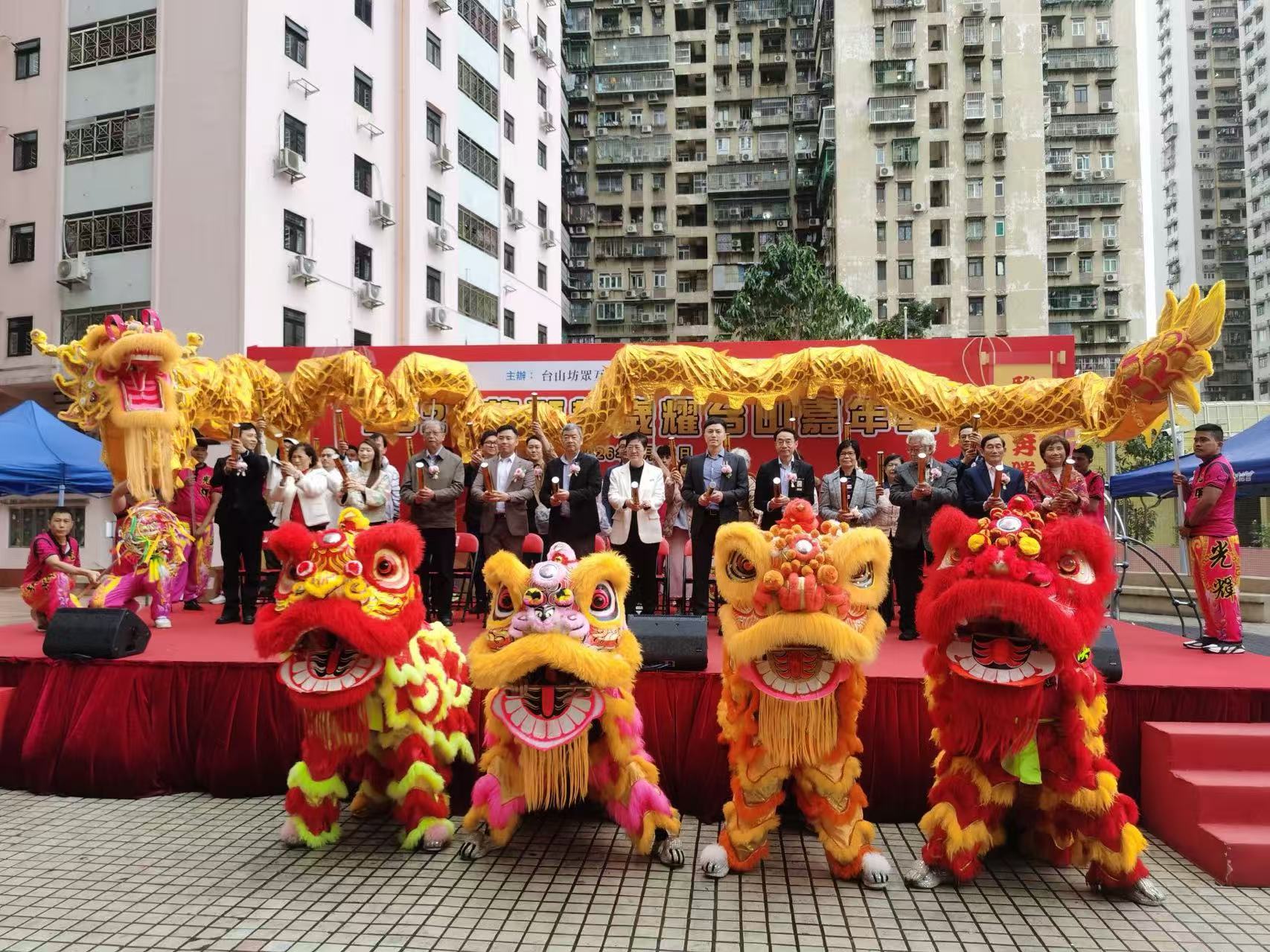 【即時新聞】由台山坊會主辦,澳門文化發展基金資助的 2026「龍獅賀歲耀台山嘉年華」活動今日下午三時假台山平民新邨廣場舉行,為歡慶農曆新年增添了滿滿的節日氣氛與文化色彩。本次嘉年華活動以弘揚傳統文化、促進社區和諧為宗旨,吸引了眾多市民和遊客前來參與,共享新春佳節的喜樂氛圍。