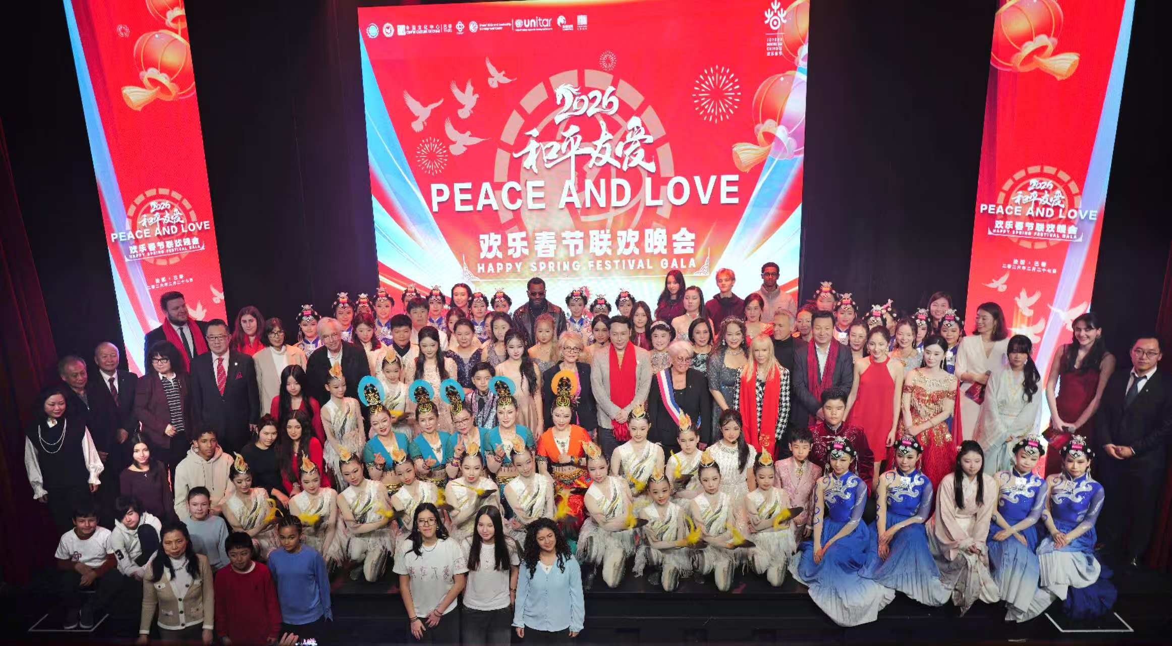 【即時新聞】文明互鑒築橋樑,和平友愛向未來。2月27日,農曆丙午馬年正月十一,一場以「和平友愛」為主題的文化盛典——2026「和平友愛」歡樂春節聯歡晚會在法國巴黎艾菲爾鐵塔劇院隆重舉行。活動由中國世界民族文化交流促進會、聯合國可持續發展目標與領導力發展中心聯合主辦,全球青年文明對話聯盟承辦,並得到巴黎中國文化中心、聯合國教科文直屬協會等機構支持。主辦方邀請了二十多個國家大使出席,現場座無虛席。