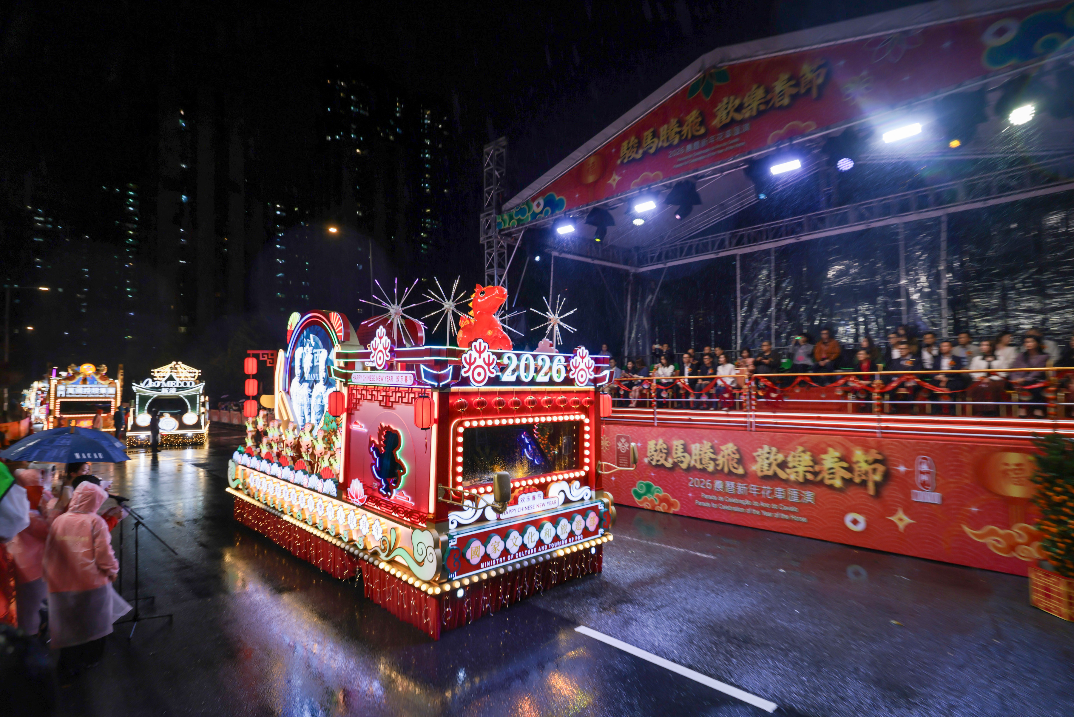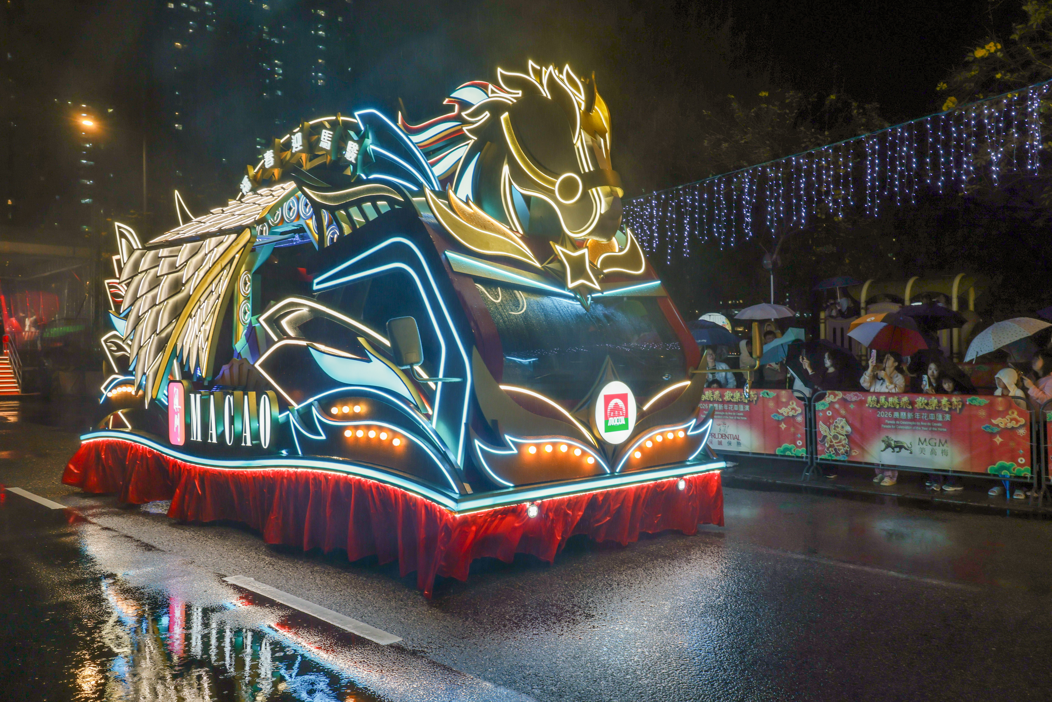 【即時新聞】第二場“駿馬騰飛 歡樂春節 2026農曆新年花車匯演”於今農曆正月十二(28日)晚上在北區舉行,17部美輪美奐的花車送福到北區,與居民和旅客同慶新歲,延續節慶熱鬧氣氛。