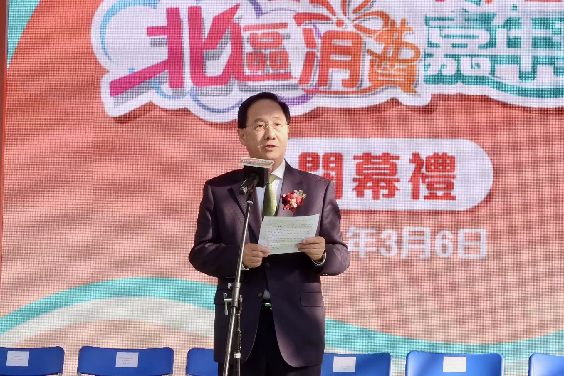 經科局廳長劉傑麟致辭時表示,本屆北區消費嘉年華透過電子消費抽獎、商戶優惠及終極大抽獎等,有效促進社區消費,並取得豐碩成果。特區政府致力營造優質的營商環境,支持本地社團、商會舉辦各類活動盤活社區經濟,同時透過各項施政工作,鼓勵中小企業與時並進,革新經營,提升服務品質與競爭力,實現中小企業的可持續發展,藉此持續推進“1+4”經濟適度多元發展的實踐。今年,特區政府將繼續與工商業界、社團及商會保持溝通和合作,結合各社區資源與特色,聯動不同社區的歷史文化,吸引更多居民和旅客走進社區,為商戶拓客引流,以多方面、多維度、多元化的策略推動社區經濟發展。