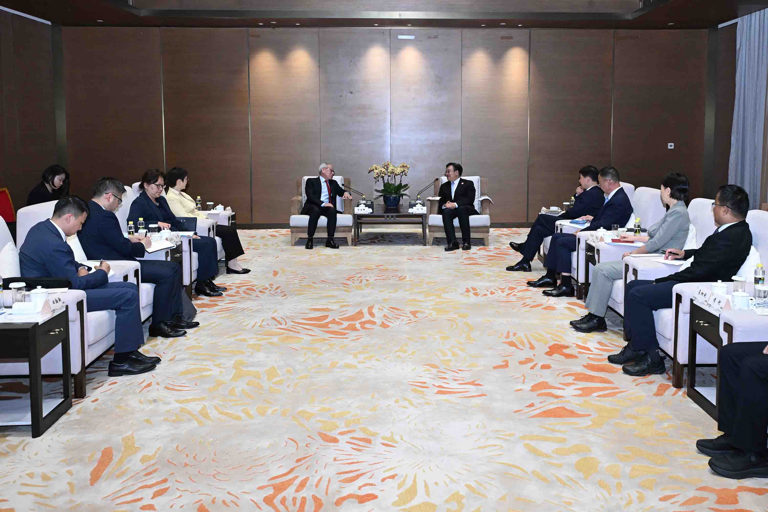 出席會面的還有特區政府代表團隨團顧問、外交部駐澳門特派員公署特派員卞立新,行政長官辦公室主任陳格,以及海南省委常委、常務副省長巴特爾,省委常委、省委統戰部部長尹麗波,省發展和改革委員會主任綦樹利等。