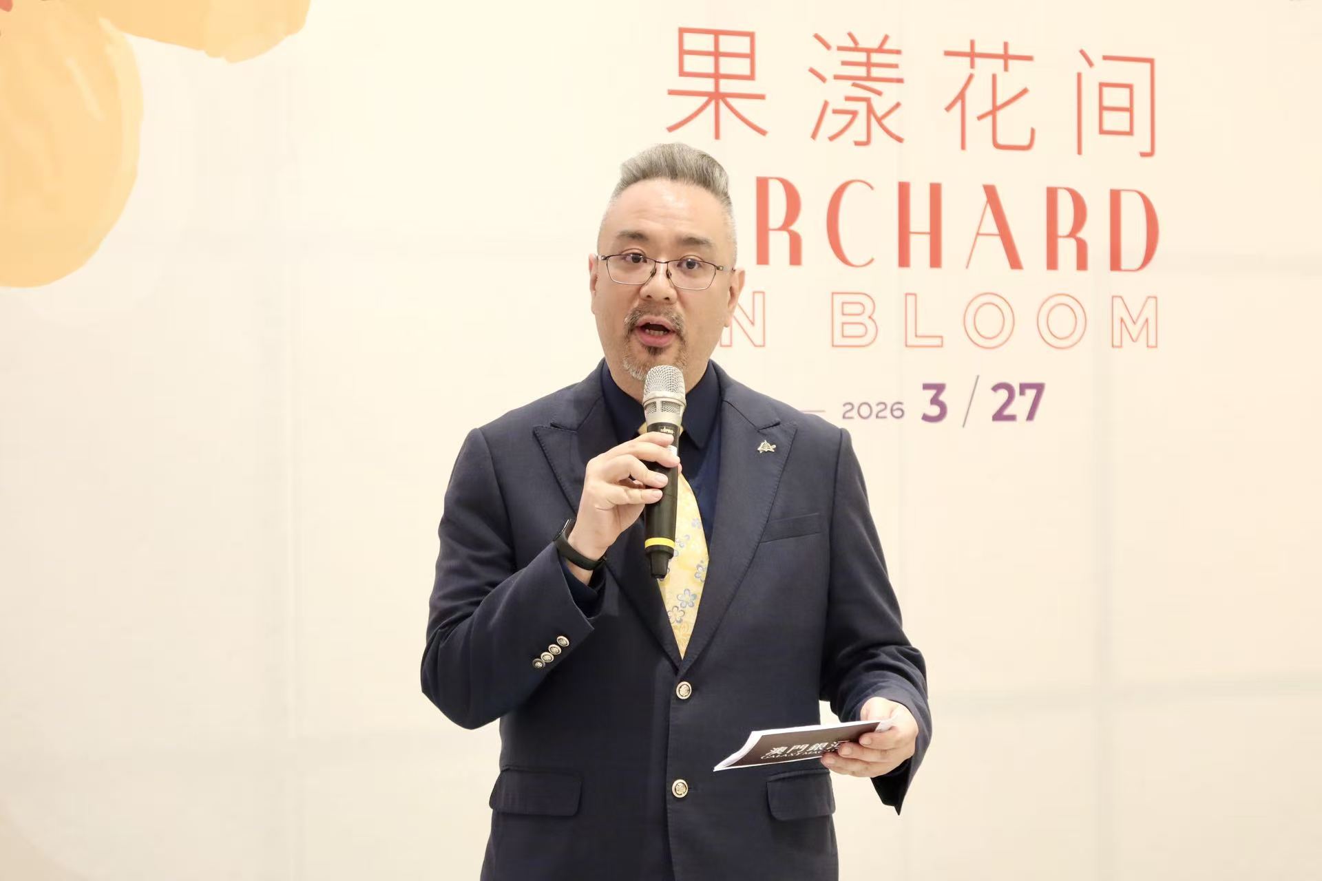 「果漾花間下午茶」媒體發佈會今日下午舉行,由Martin Braun Gruppe Hong Kong常務董事麥婉雯、澳門銀河餐飲部助理副總裁梁劍虹,以及兩位甜點大師Pierre-Henri Roullard及任樂軒一同主持儀式。