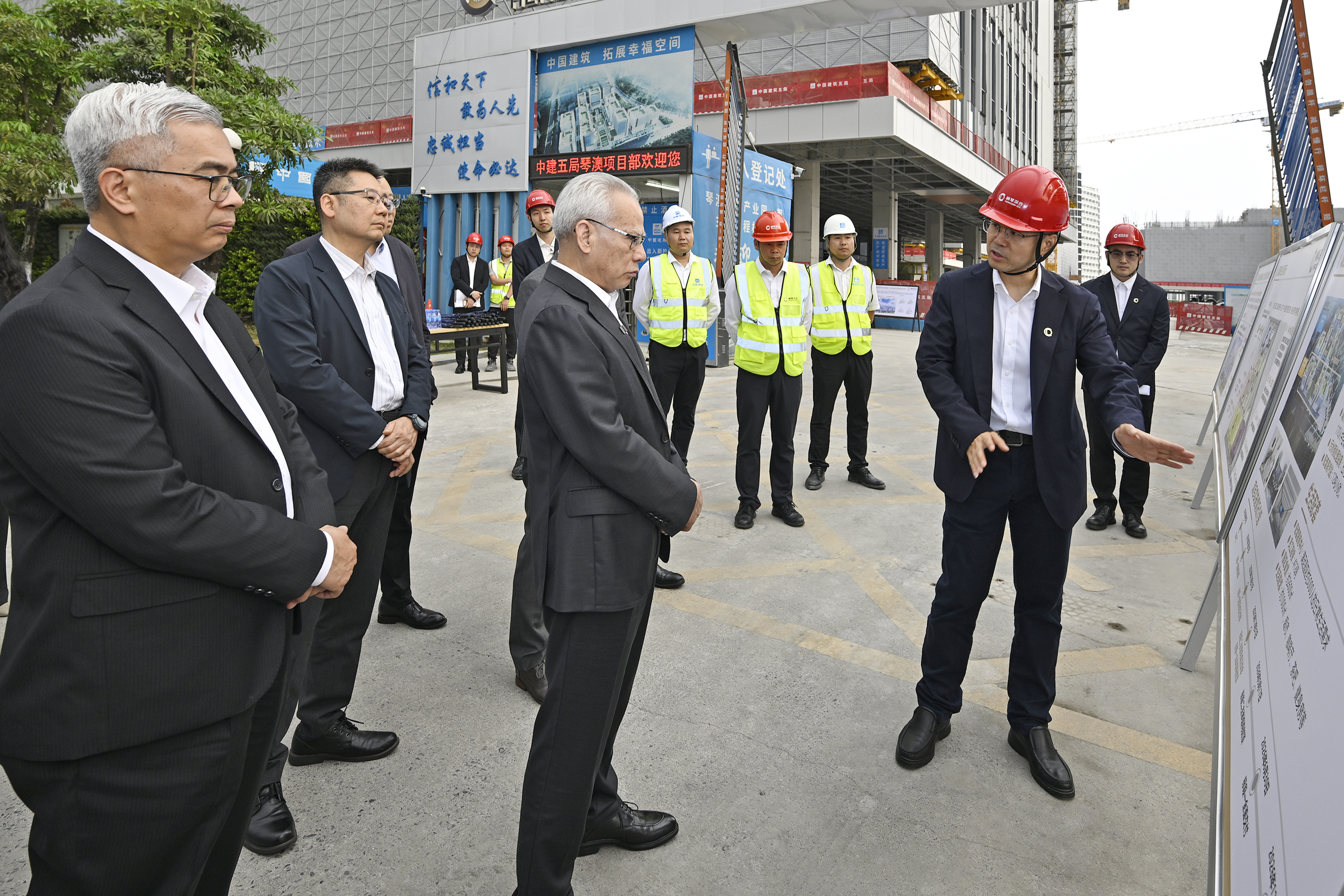 工作會議前,岑浩輝在合作區進行考察調研。他首先到訪中國—葡語(西語)國家經濟貿易服務中心,聽取該中心運作情況及發展計劃的匯報,並在中心所處大樓的高處俯瞰澳門大學橫琴合作區校區及廣珠(澳)高鐵橫琴站選址,了解項目推進情況。岑浩輝亦分別到橫琴國際數智人材培養基地及琴澳創新產業園調研。