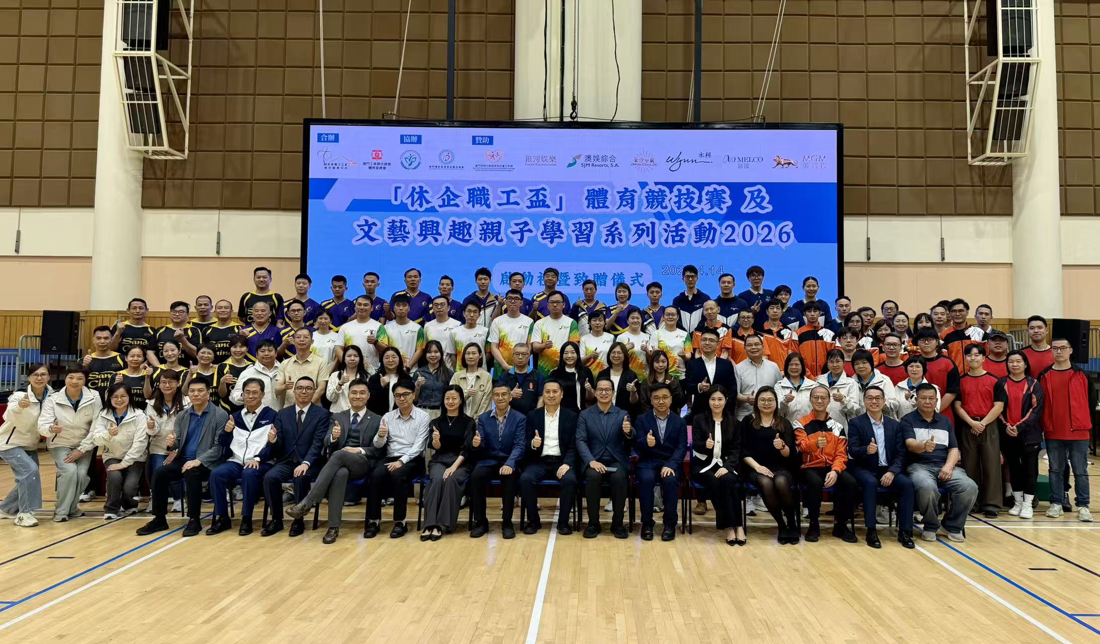 【即時新聞】由澳門博彩業職工之家綜合服務中心、澳門工會聯合總會體育委員會合辦,社會工作局、銀河娛樂集團、澳娛綜合、金沙中國、永利、新濠博亞娛樂以及美高梅贊助的2026「休企職工盃」體育競技賽及「文藝興趣親子學習系列活動」啟動禮暨致贈儀式,今晚七時假工人體育場 A 館舉行。本年活動將聚焦職工身心健康與家庭和諧,透過體育競技、文藝興趣、親子學習等多元內容,舒緩職工壓力、豐富工餘生活、增進家庭互動,進一步凝聚業界向心力,全年預計可提供的活動名額2600個。
