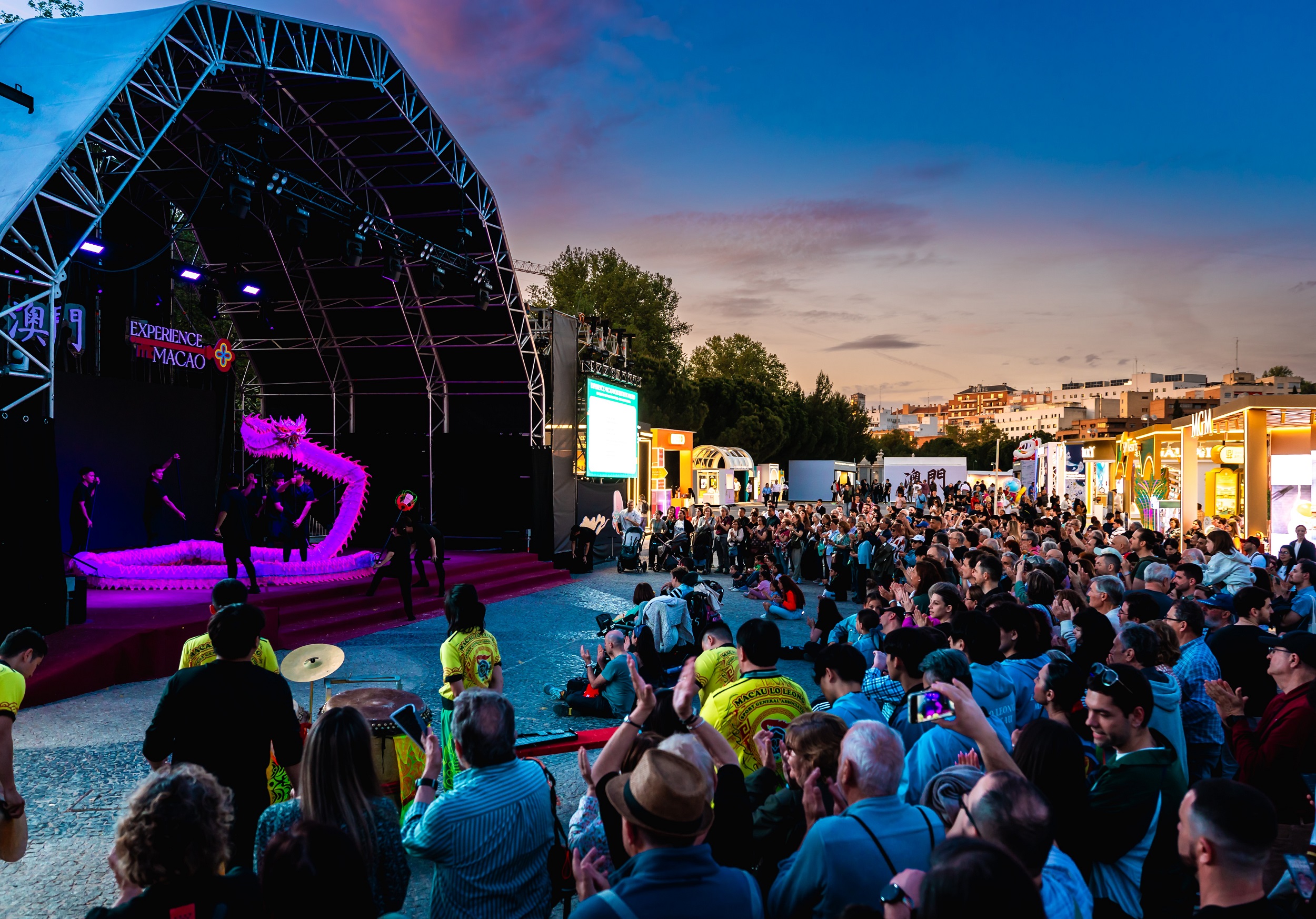 現場設有四大展區共20個展位,帶來多項精彩互動體驗,展現澳門“世界旅遊休閒中心”的豐富內涵。當中包括以澳門非物質文化遺產舞獅及中式裙褂為主題的體驗區、澳門傳統茶樓快閃區、澳門大賽車博物館呈獻東望洋跑道模擬賽車駕駛體驗、互動遊戲及沉浸式虛擬實境(VR)裝置等。現場特設澳門旅遊業界區及旅遊產品推廣展區,多個政府部門亦設置展位介紹澳門商貿、文化、體育以及橫琴的發展潛力,積極吸引西班牙旅客來澳門旅遊。
