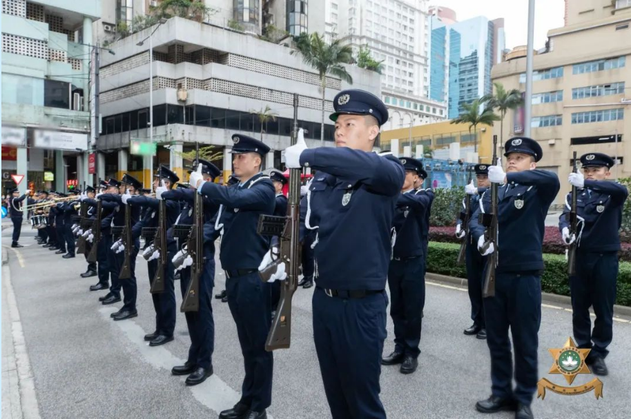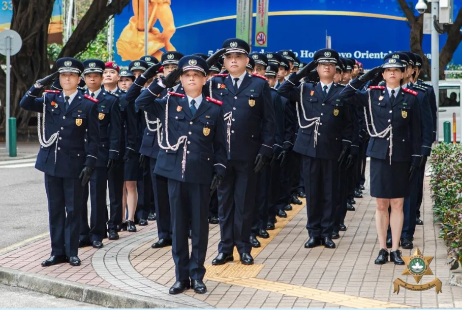 【即時新聞】為慶祝「治安警察日」,治安警察局領導帶領各廳級及主管人員於上午在總部大樓正門前舉行簡單而隆重的升旗儀式。