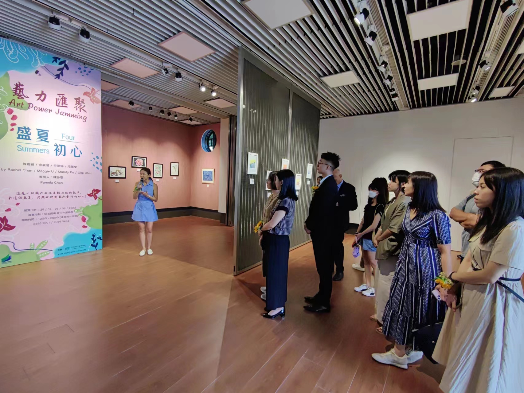 開幕儀式下午1時舉行,方舟澳門藝術學會副會長、策展人陳詠璇致詞表示,該會成立以來持續透過舉辦各類主題藝術活動和展覽,期望藉此提供學習和交流平台予藝術愛好者,培育更多人才。 今年,該會特別為四位熱愛藝術、美學與想像的年輕女孩舉行聯展,透過她們充滿活力和色彩的作品,表達對盛夏的渴望,希望能夠透過藝術創作找到初心,重拾自己的情感並重新發現美好的回憶。