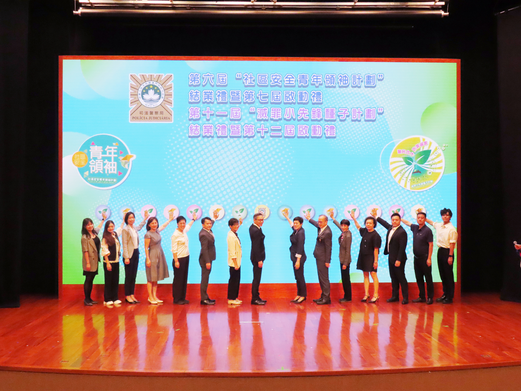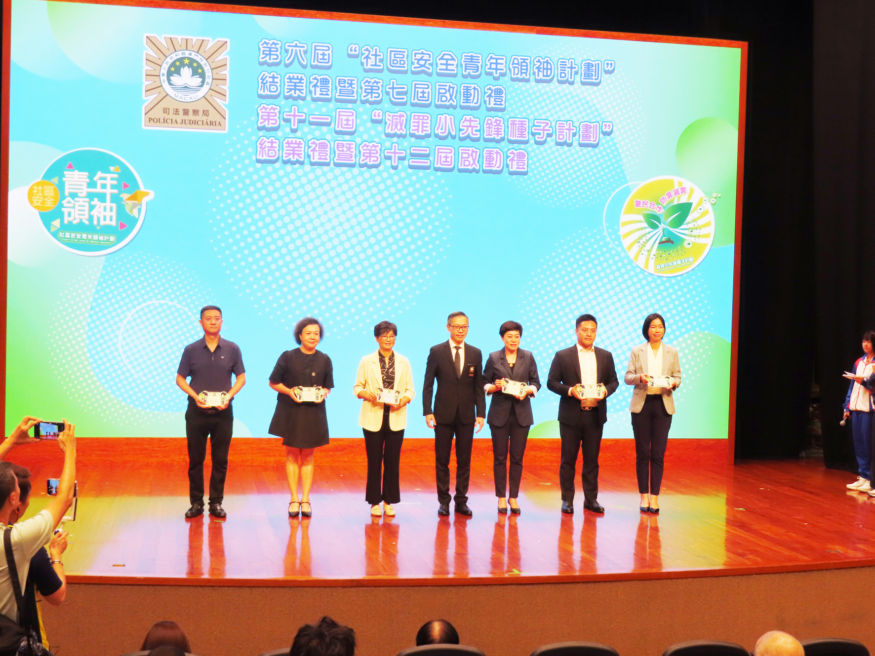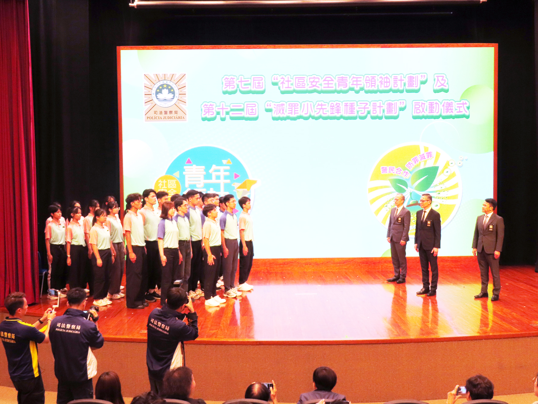 【特訊】司法警察局昨舉行第六屆「社區安全青年領袖計劃」、第十一屆「滅罪小先鋒種子計劃」結業禮暨新一屆計劃啟動禮,為去年參與兩項計劃的學員頒髮結業證書,以及向優秀學員進行嘉許,同場舉行新一屆計劃系列活動啟動儀式,今年分別有來自本澳7間高等院校、100名大專學生,來自39間中學、300名中學生參加。局長薛仲明寄語新學員把握機會,勇於接受挑戰,努力學好本領、鍛煉能力,成為負責任、有擔當的良好青年,將來學有所成後,為維護國家和澳門安全作出更有力的承擔。