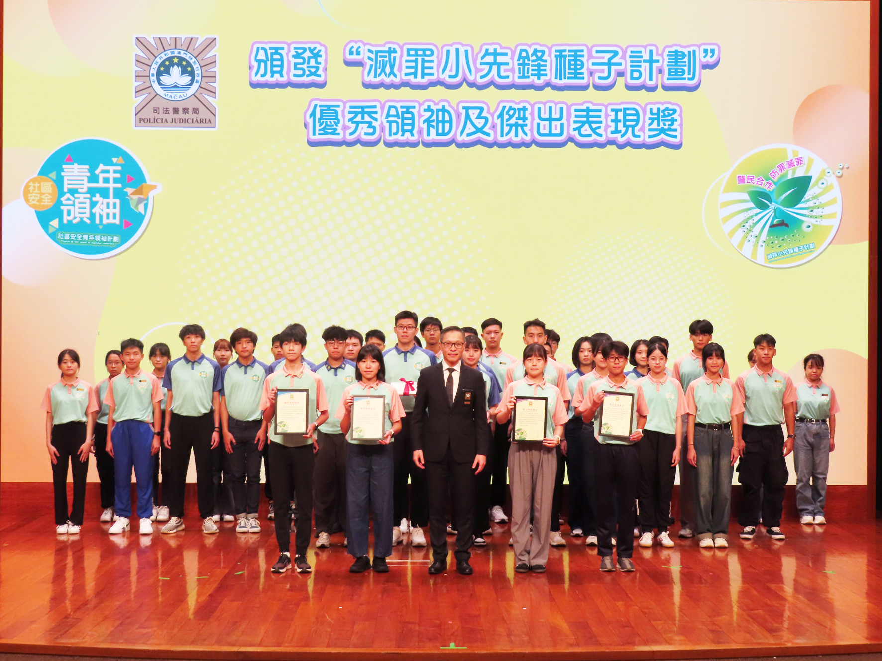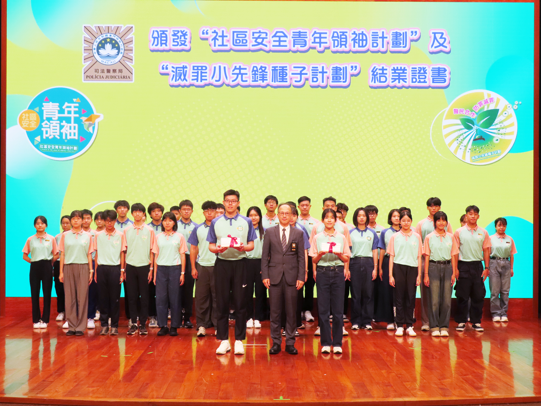 他續稱,今時今日,青少年成長環境複雜,特別在互聯網、社交平台的影響下,令青少年更容易接觸到不良資訊,被犯罪侵害的風險不斷加大。令人感到欣慰的是一眾「社區安全青年領袖」與「滅罪小先鋒」,不但潔身自愛、遠離犯罪,當詐騙、毒品等犯罪對現今青少年產生更大威脅的時候,他們更勇於走到防罪前線,在同群中樹立守法榜樣、宣揚守法意識。早前,局方為應屆畢業的青年學員舉辦歡送儀式,通過面對面交流,他深刻感受到年輕人懷有的熱誠和抱負,相信只要他們繼續秉持積極態度、不忘所學,將來必定為強國建設、民族復興偉業作出應有的貢獻。局方將與社會各界保持緊密合作,共同為青少年的健康成長創造更多良好條件,培育青少年嘅守法同愛國精神,為國家同澳門嘅發展進步貢獻更大力量。