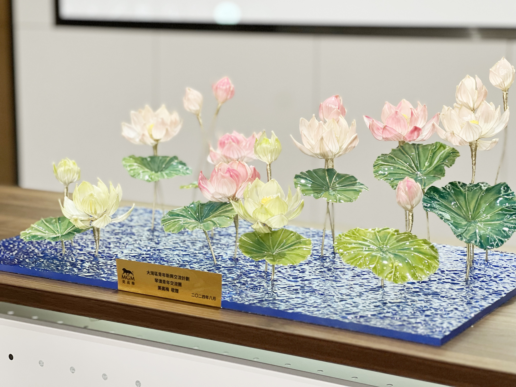 【特訊】為期兩天舉行的「大灣區青年新興交流計劃」昨日繼續開展深合區參訪行程,上午走訪了深合區內的中醫藥和高新科技企業,並參與了橫琴青創政策分享會,加深對橫琴「1+4」產業及未來發展規劃等的瞭解。下午則分組進行藝術作品創作,青年們合力打造了一件精緻的荷花主題工藝品,象徵「青春之花」在橫琴綻放,寓意著琴澳攜手共建美好未來的願景,為此次探索之旅劃上圓滿句號。