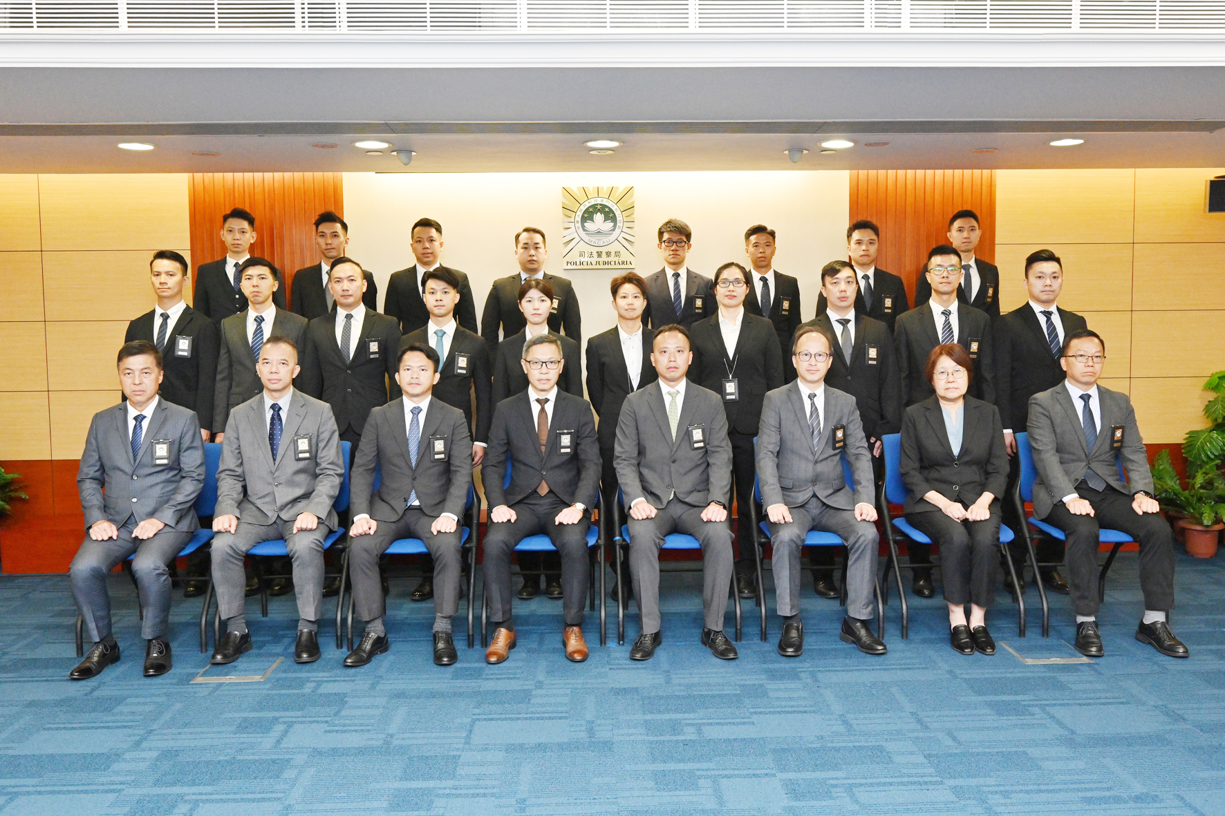 【特訊】司法警察局於昨日舉行首席刑事偵查員就職儀式。在局長薛仲明主禮及監誓,賴文威、蘇兆強、岑錦榮三位副局長和各部門主管的見證下,共78名人員宣誓就任首席刑事偵查員。