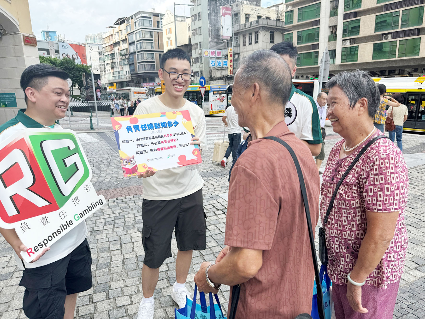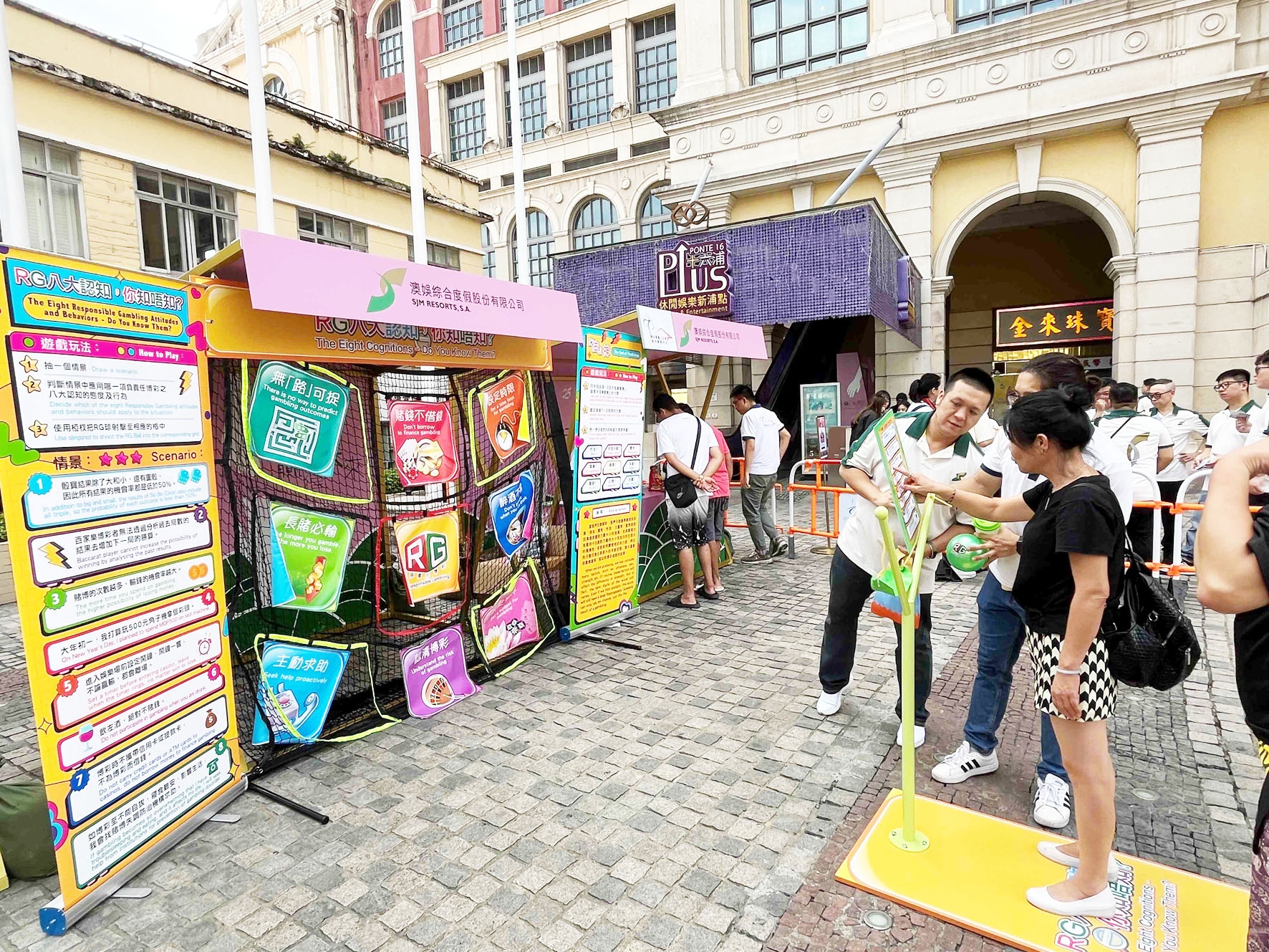 此外,澳娛綜合與聖公會澳門社會服務處合作,在十六浦和新馬路片區周邊人行道舉辦「負責任博彩社區快閃活動」,沿途與市民及遊客進行互動遊戲;派發負責任博彩資訊卡,宣揚健康理財和適度耍樂的重要性;介紹為受賭博失調困擾人士而設的初步評估及轉介服務和預約資訊,讓他們可在有需要時尋求專業協助。