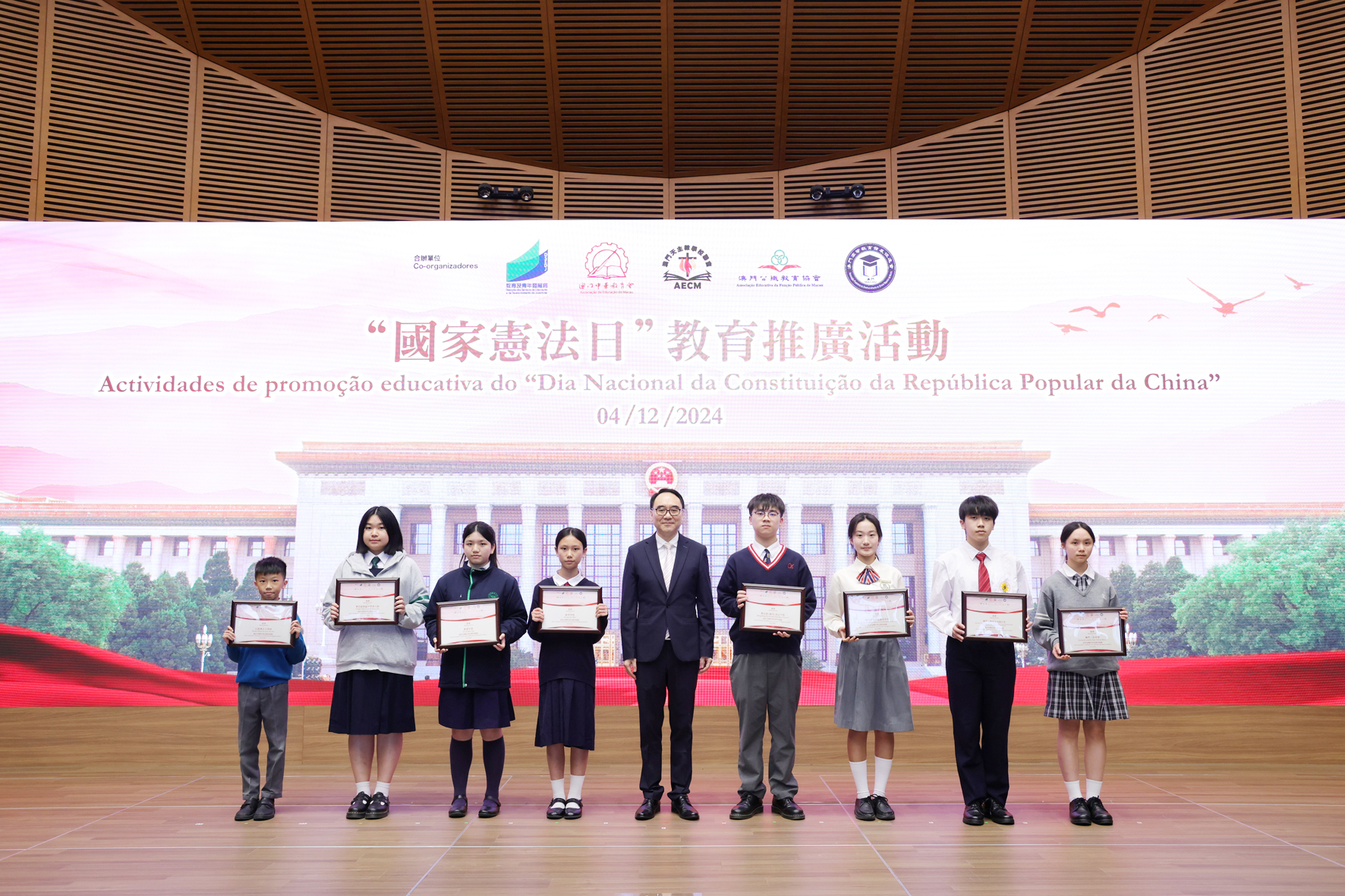 活動上頒發了感謝狀予參與普法教育展板的學校,並嘉許了全澳校際中學生《憲法》和《基本法》知識線上比賽獲獎學生,當中初中組冠、亞、季軍分別由教業中學、東南學校及化地瑪聖母女子學校奪得,而高中組冠、亞、季軍分別由教業中學、東南學校及新華學校奪得。同場由「我與《憲法》和《基本法》演講比賽」中學組季軍學生黃廣慧及「第九屆全國學生『學憲法 講憲法』活動」全國總決賽(演講比賽)高中組冠軍學生週倩若現場演繹獲獎作品。