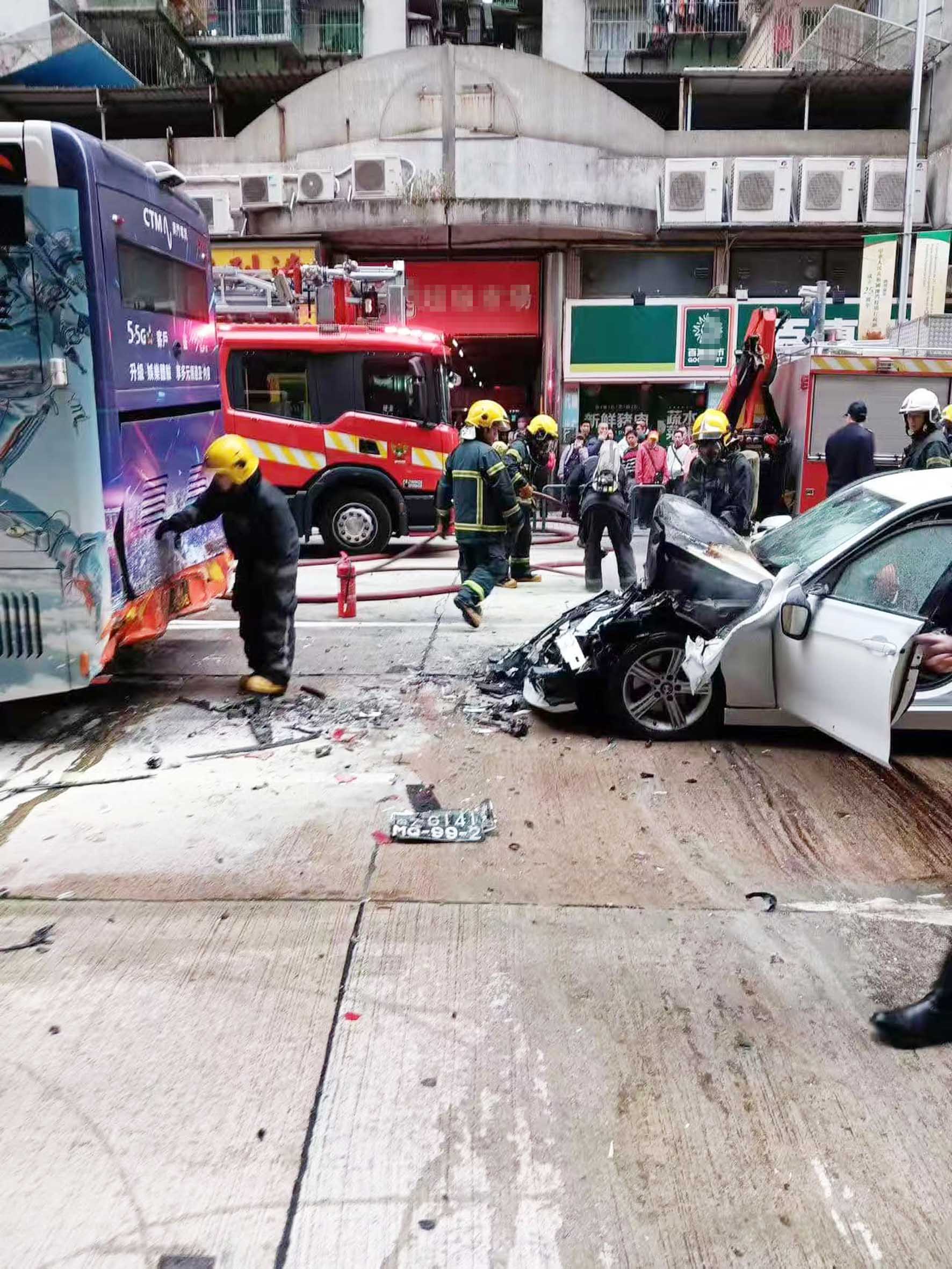 【特訊】昨天下午四時許,慕拉士大馬路與慕拉士巷交界發生一宗嚴重交通意外。一輛私家車懷疑追尾撞及前面一輛巴士後車頭著火,消防隊員到場開喉灌救將火救熄。現場共有3名傷者,其中一名女性私家車司機、57歲、澳門居民,意識模糊沒有呼吸心跳,被送往山頂醫院搶救無效身亡。
