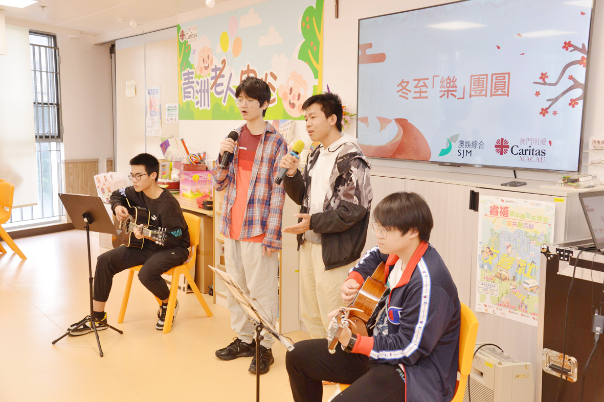 當天,澳娛綜合團隊與一眾青少年首先帶領長者做熱身操,其後由青少年進行音樂表演,並與長者一同玩遊戲及製作傳統香囊,又派發冬至禮物包,打造歡樂溫馨的佳節時光,讓長者感受到社區的關懷。