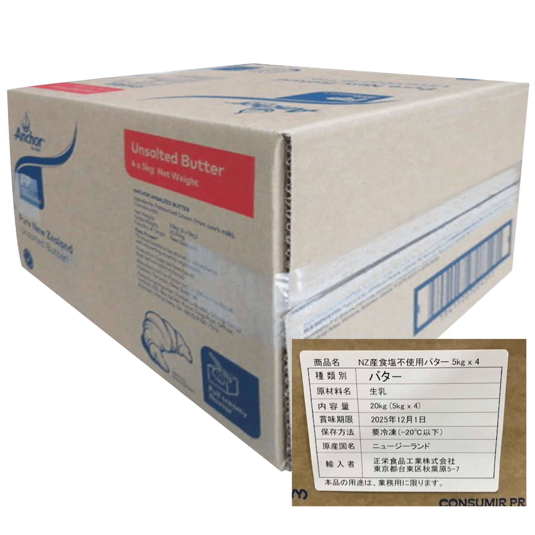 涉事產品名稱為「Pure New Zealand Unsalted Butter」,品牌為「Anchor」,產地為紐西蘭,每箱淨重為20公斤(內含每件5公斤 × 4件),此日期前最佳為2025年12月1日。