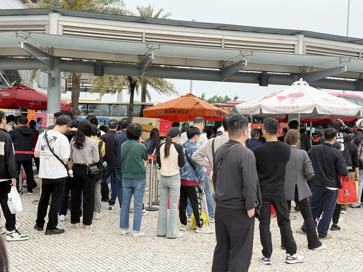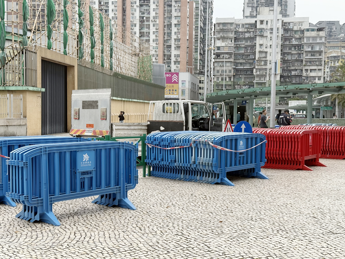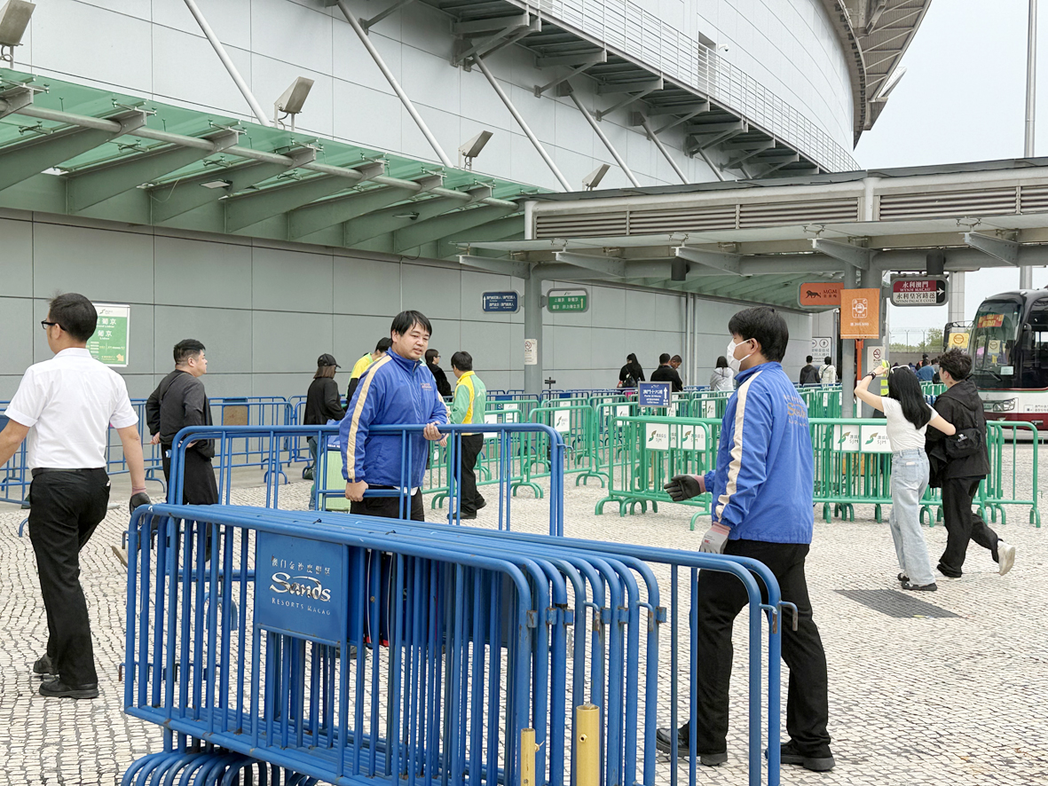 假期尾聲,關閘廣場入境旅客逐漸減少,發財巴候車區排隊人潮散去,工作人員在場拆除鐵馬。