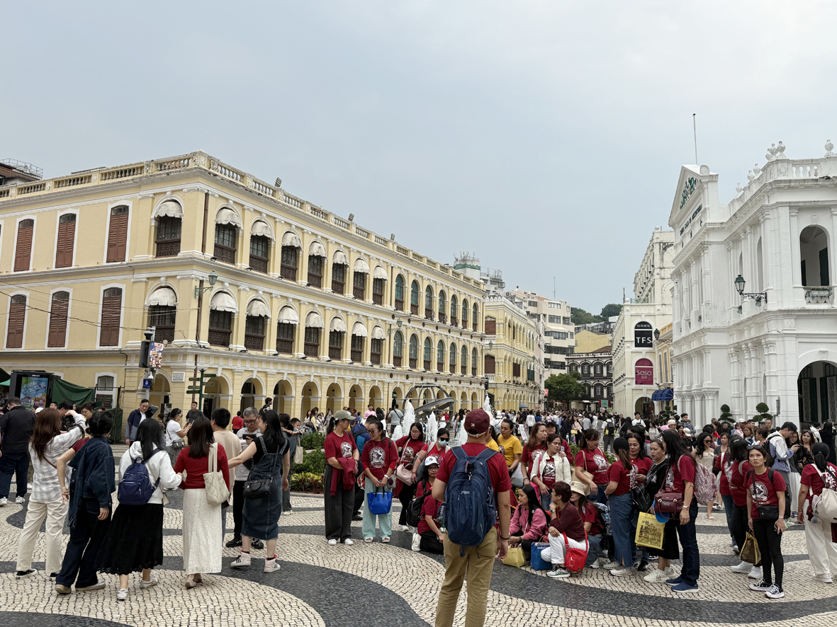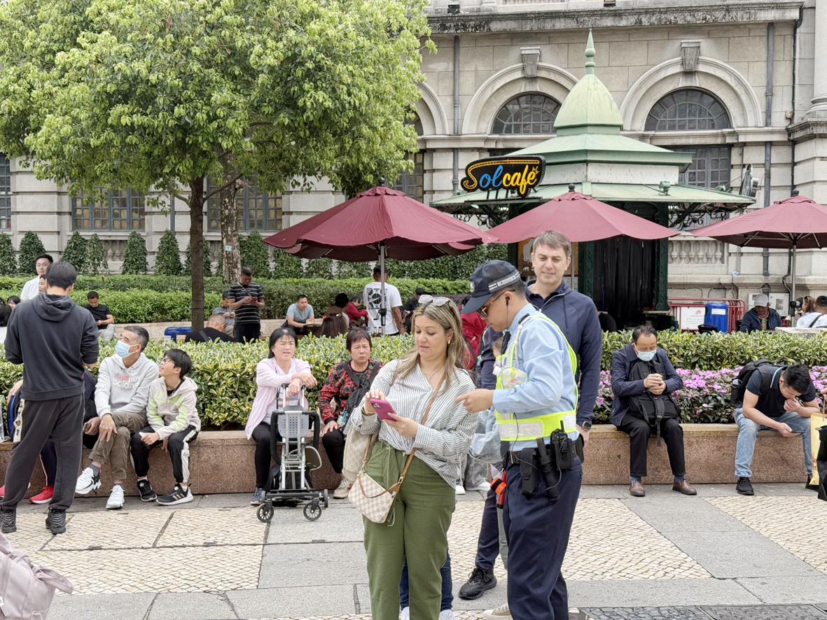 【特訊】一連三日的清明節假期,中區一帶人山人海、熱鬧非凡,遊客們紛紛在噴水池、大三巴牌坊等著名景點前拍照留念,多家店舖吸引遊客駐足。
