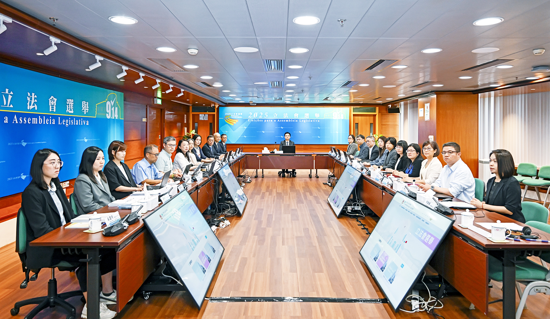 關於選舉日的工作人員,盛銳敏表示,選管會基本定出了相關的選務人員安排。單在投票站內,負責派票、點票的核票員,以及領導票站工作的執行委員會成員,就需要超過1,300人。早前經向各公共部門招募,有2,200人願意參與。選管會現已完成甄選程序,待作出正式委任後,將於8月再分批進行培訓及演練,務求讓每位選務人員都能依法、有序地嚴謹執行各項選務工作,協助選民順利投票,以及於票站關閉後高效完成點票工作。
