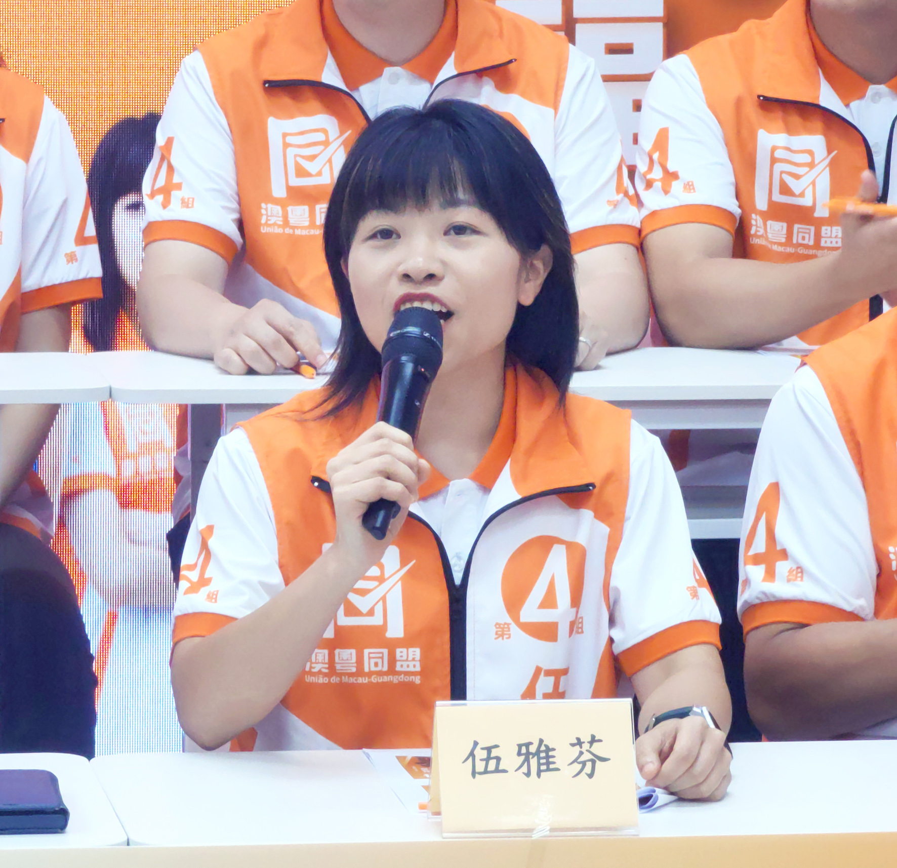 澳粵同盟第三候選人伍雅芬表示,青年是澳門未來的核心力量,需構建全方位青年服務體系,團隊建議推動政府系統性優化「學生生涯規劃藍圖」,加強職業生涯規劃師培訓,輔導青少年明確發展方向;並推動政府設立青年首次就業資助,建議政府向聘請應屆畢業生的僱主提供每月5,000元補貼予青年,為期18個月,致力推動青年更好成長和發展;同時推動政府與各大企業合作,大幅增加實習崗位數量,讓學生累積寶貴工作經驗。
