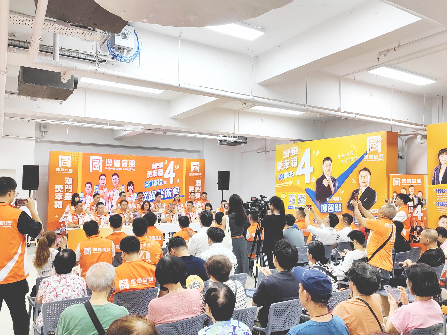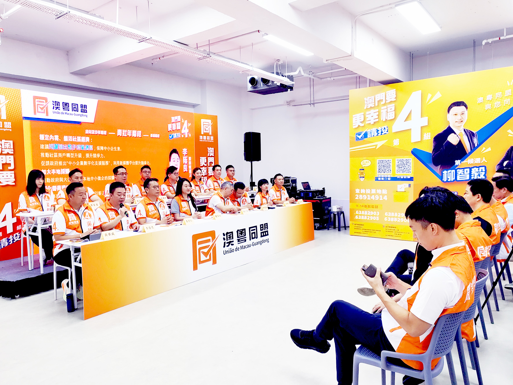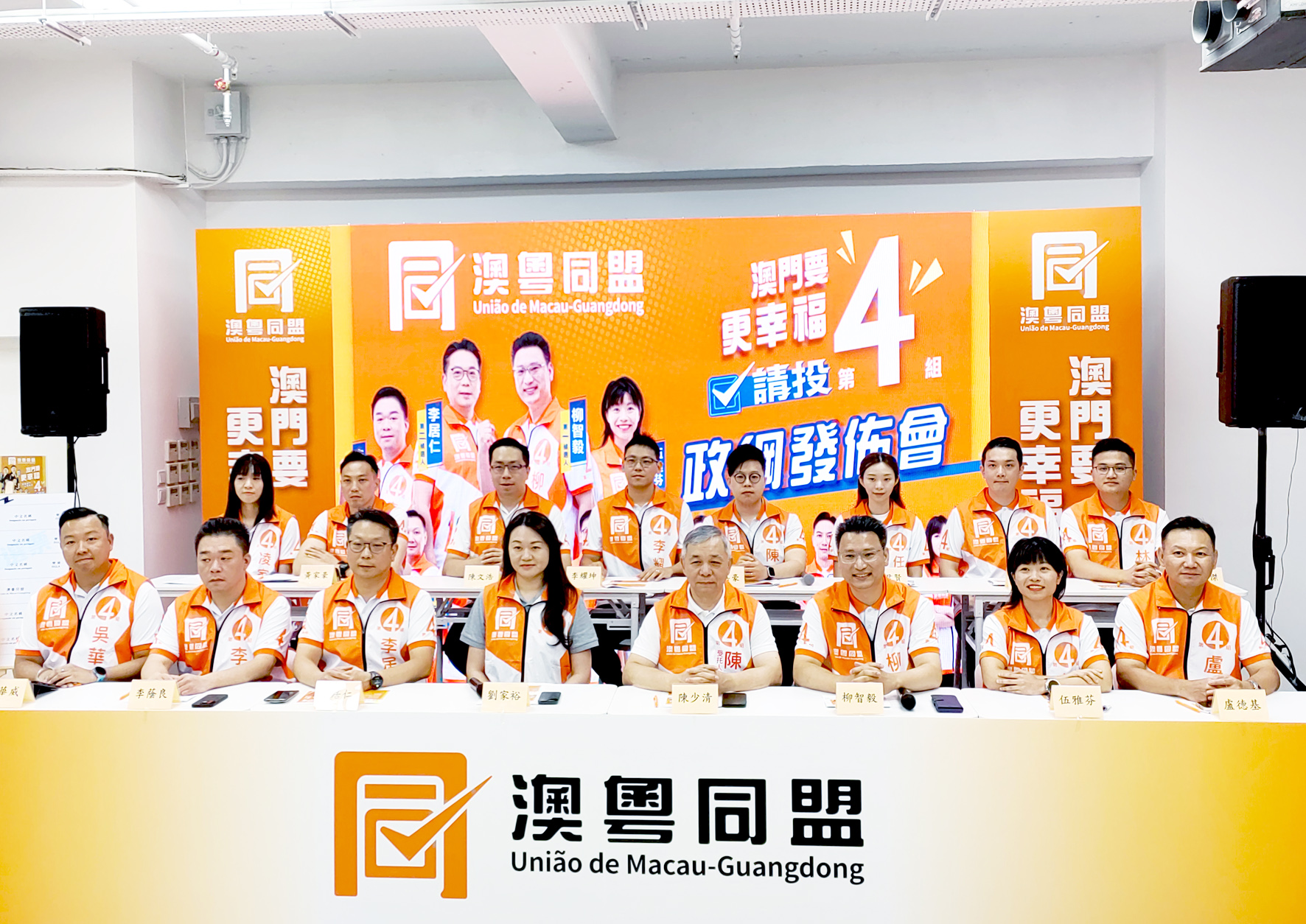 發佈會昨日下午三時假澳粵同盟氹仔競選總部舉行,由「澳粵同盟」總幹事劉家裕主持,受託人陳少清及十四位候選人柳智毅、李居仁、伍雅芬、李蔭良、盧德基、吳華威、陳嘉豪、李耀坤、陳文浩、任君賢、甘智光、黃家豪、林華傑及凌家珍等出席,參選政綱圍繞經濟發展、民生福祉、澳粵合作、社會治理、青年發展五大核心範疇,以不同年齡層需求為切入點,闡述政綱內容及政策主張,呼籲市民在9月14日投票支持第四組。