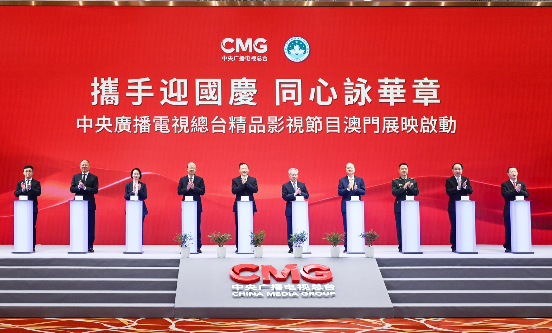 啟播儀式後緊接舉行「盛世蓮開頌華章 - 中央廣播電視總台與澳門各界深化合作儀式」,雙方代表分別交換《中央廣播電視總台與澳門特別行政區政府深化戰略合作框架協議》、《國家電影局與澳門特別行政區政府社會文化司關於電影產業合作框架協議》、《十五運會和殘特奧會澳門賽區籌備辦公室與中央廣播電視總台合作意向書》、《中央廣播電視總台與澳門廣播電視股份有限公司關於整頻道轉播央視CCTV-5體育頻道的協議》、《中央廣播電視總台亞太總站與澳門大學深化戰略合作框架協議》等5份合作文件。最後,岑浩輝與一眾主禮嘉賓共同啟動「攜手迎國慶 同心詠華章」總台精品影視節目澳門專場展映。