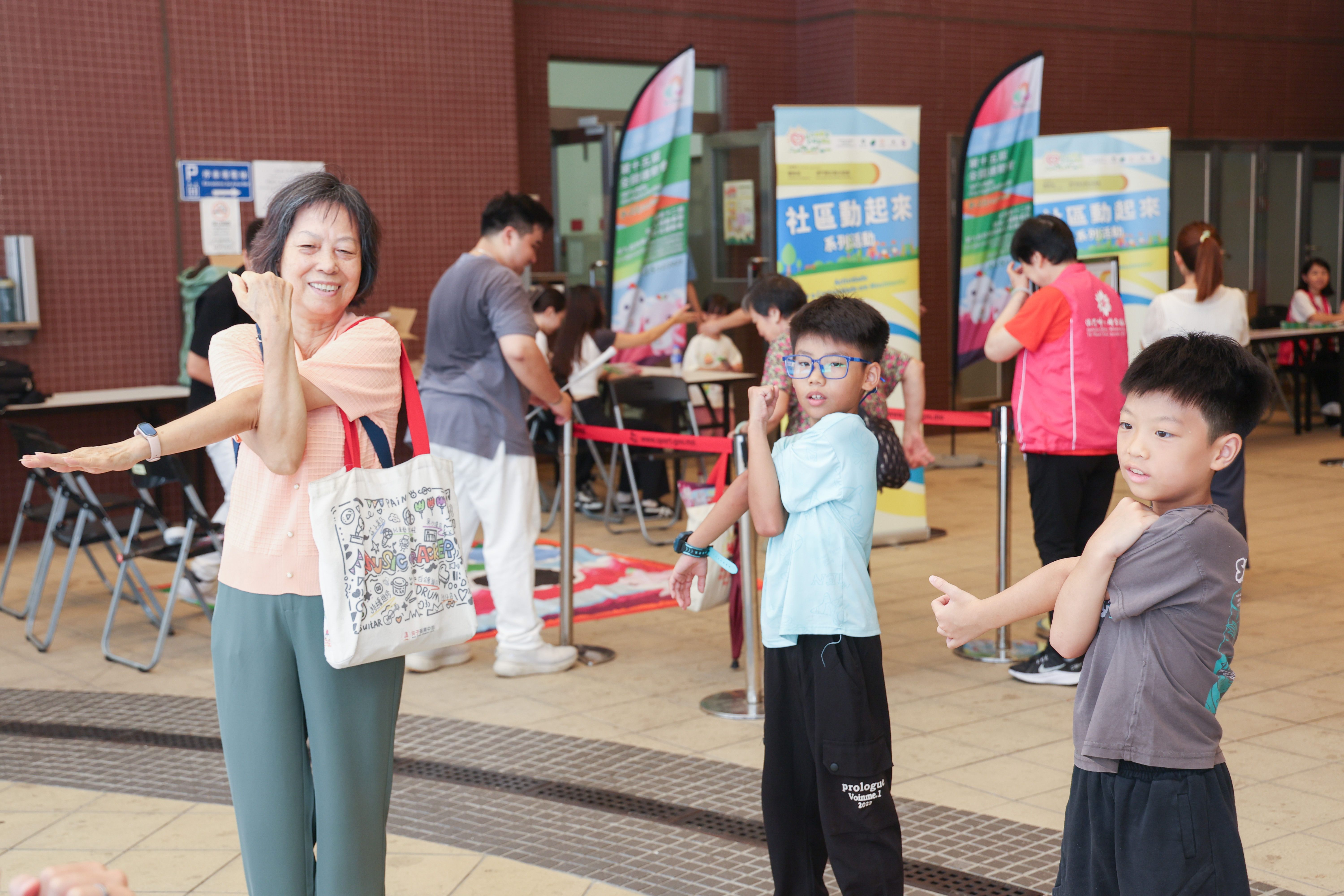 活動期間,有專業人員現場帶領居家運動教學及伸展減壓操,並分享實用營養建議,推動居民關注身心健康。參與民眾絡繹不絕,包括銀髮族、青年及親子家庭共同投入。在居家運動教學區,不少居民在教練逐步指導下,學習簡單易做的伸展動作,氣氛輕鬆融洽。