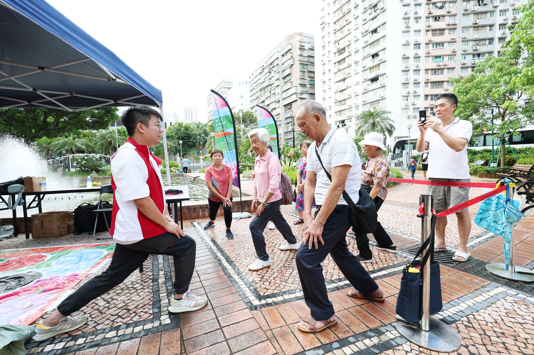 活動以「運動減壓、運動營養」為主題,連續兩週在全澳各社區展開,現場不僅設置專題攤位遊戲,更提供多項趣味運動體驗,包括羽毛球、乒乓球、足球、籃球、排球與跳繩等,吸引不同年齡層居民積極參與,場面熱鬧。