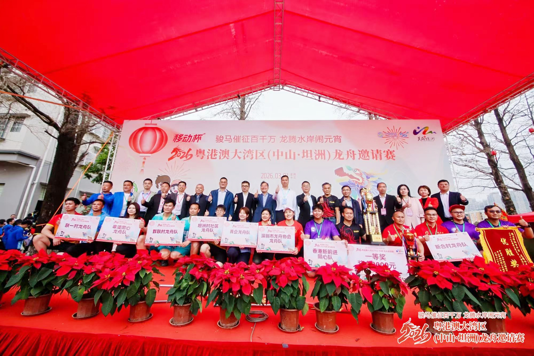 【特訊】「駿馬催征百千萬 龍騰水岸鬧元宵」2026年粵港澳大灣區(中山·坦洲)龍舟邀請賽於3月1日在中山坦洲鎮安阜涌火熱開賽,來自中山、香港、澳門、深圳、珠海等大灣區城市的15支龍舟隊逐浪競渡,以奮楫揚帆之姿,展現灣區同心、拚搏奮進的體育風尚與人文活力。