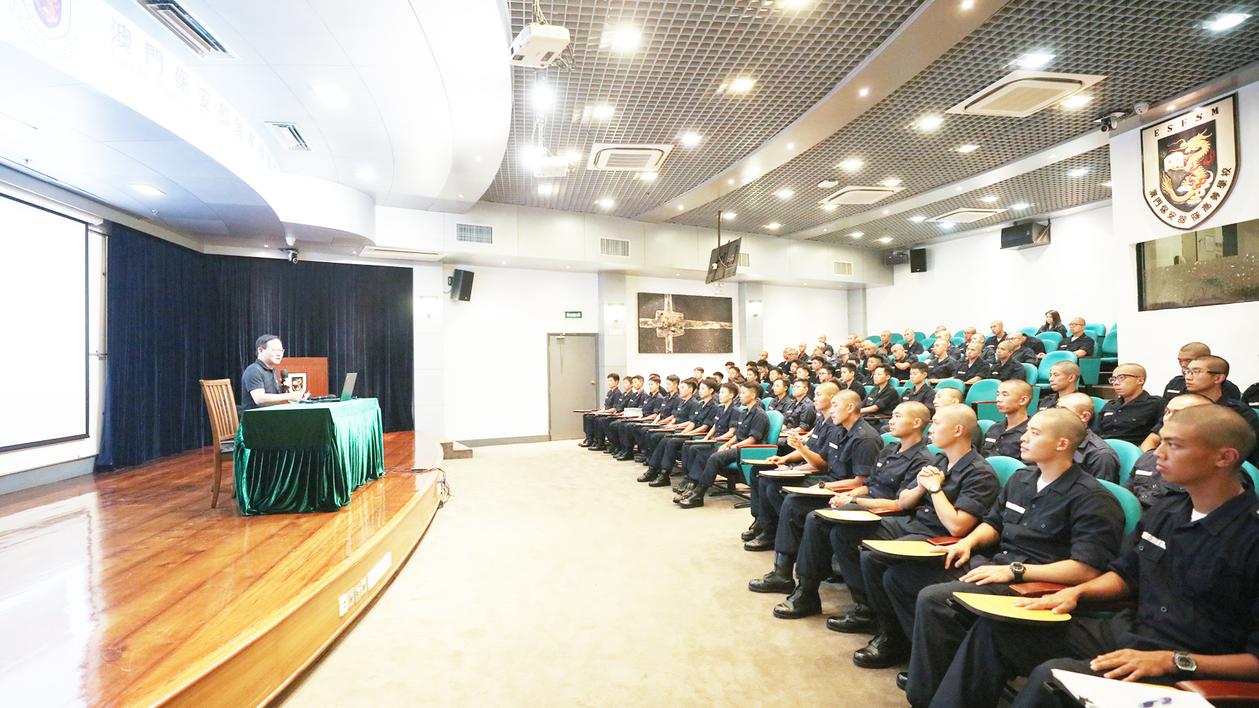 【特訊】為加強《憲法》與《基本法》的推廣教育,法務局與澳門保安部隊高等學校於8月14日合辦「高等院校《憲法》與《基本法》專題系列活動」,邀請了澳門大學法學院教授蔣朝陽擔任主講,共128名保安學員參與。