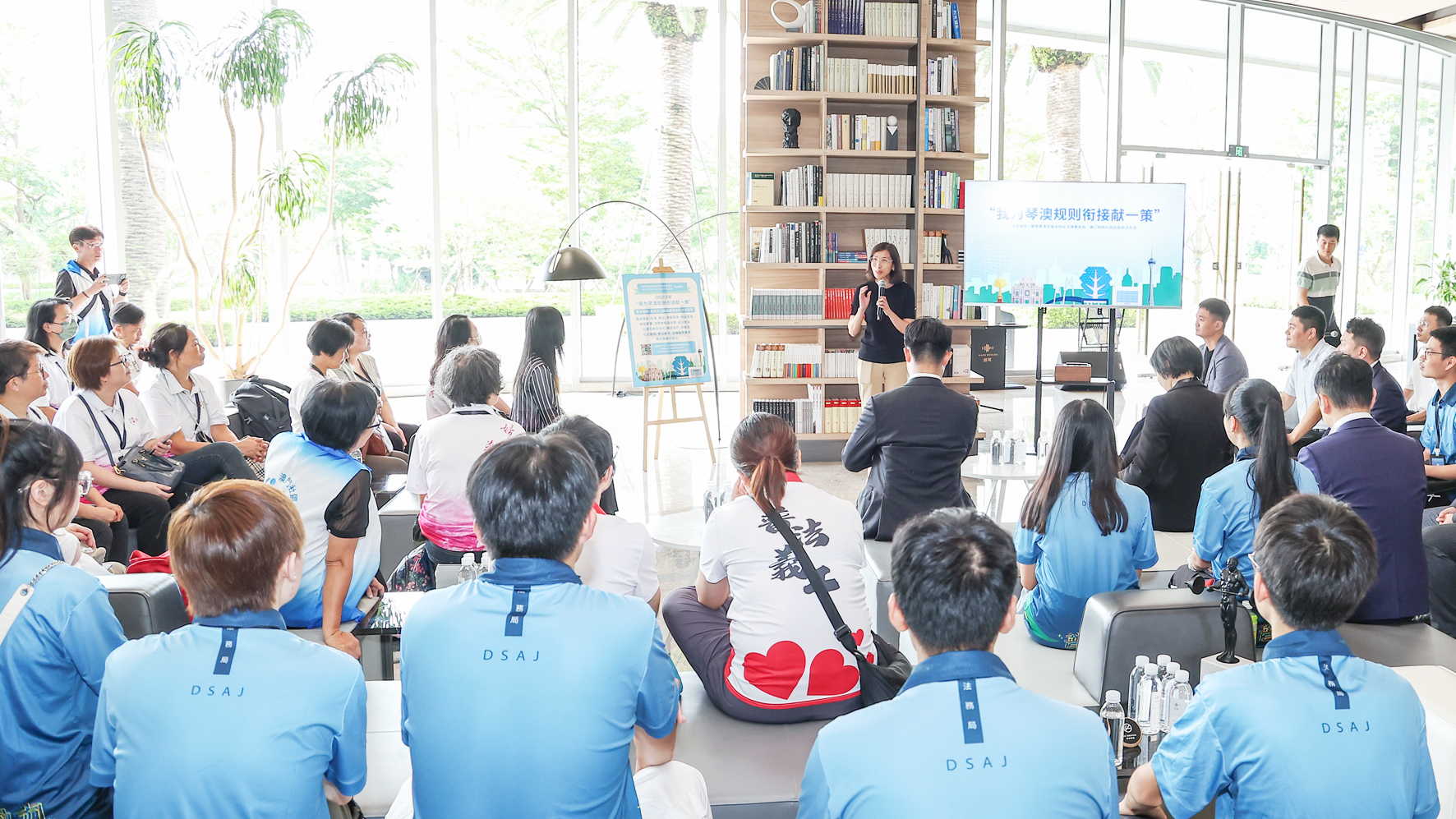 交流團首日前往了橫琴粵澳深度合作區,參觀合作區規劃展示廳、橫琴大橋「二線」海關監管作業場所、「澳門新街坊」項目以及琴澳國際法務集聚區等,深入瞭解合作區的發展情況,同時亦參加了「我為琴澳規則銜接獻一策」專題調研及線下沙龍活動,深合區法律事務局鍾穎儀局長與團員們進行座談,並聽取大家就通關便利、跨境執業、社區配套等方面提出的意見和建議。