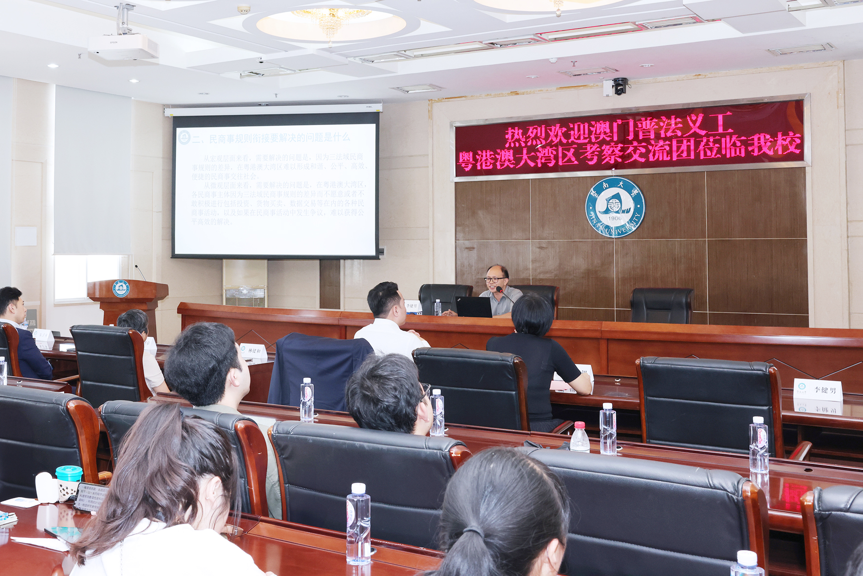 8月23日至25日交流團於廣州繼續行程,期間前往了中山大學和暨南大學學習交流,中山大學法學院郭天武教授和暨南大學法學院李健男教授分別以「粵港澳大灣區法治合作發展的理論與實踐」和「粵港澳大灣區民商事規則銜接之解釋」為主題向團員們進行授課。