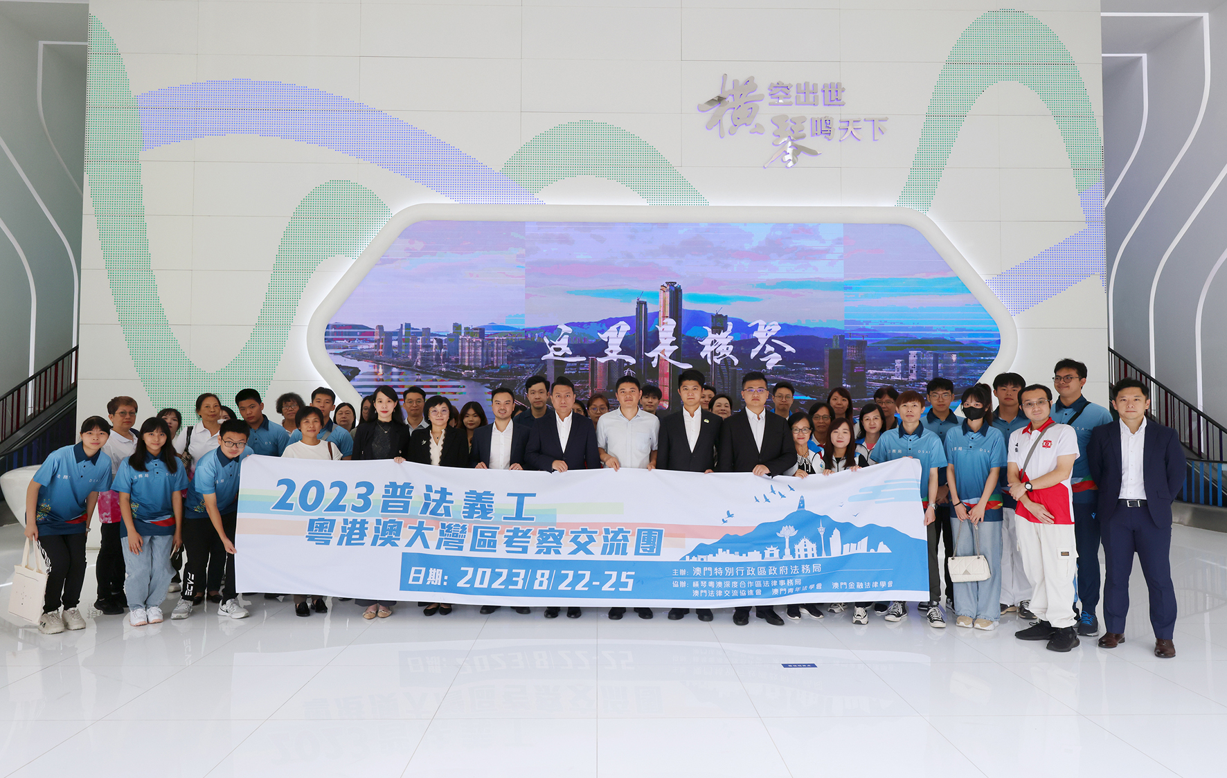 【濠江訊】由法務局主辦,澳門法律交流協進會、澳門金融法律學會和澳門青年法學會協辦的「2023普法義工粵港澳大灣區考察交流團」於8月22日至8月25日前往橫琴粵澳深度合作區和廣州進行考察交流,交流團由澳門青年法律工作者、「普法動力」青年義工團、澳門婦女普法義工團、澳門社區普法義工團和工青普法義工團,合共50人組成。